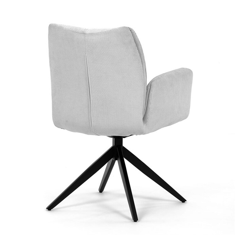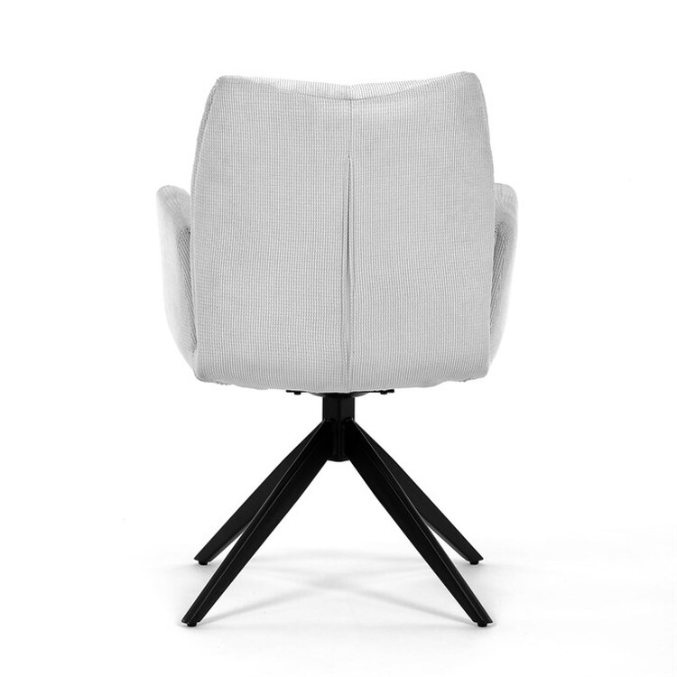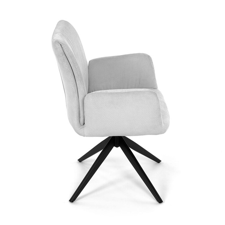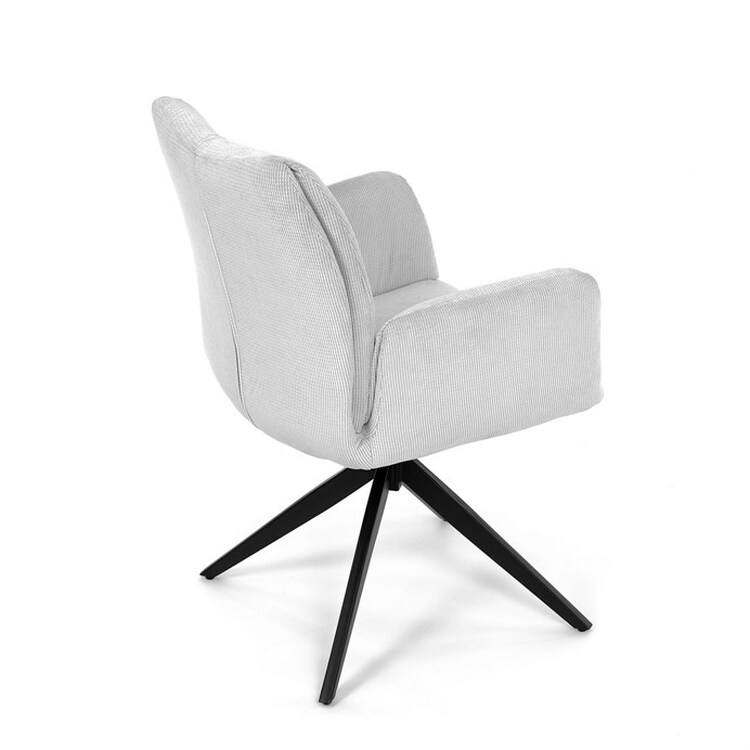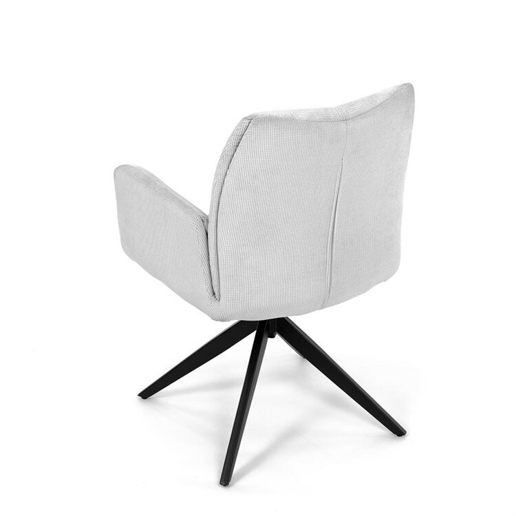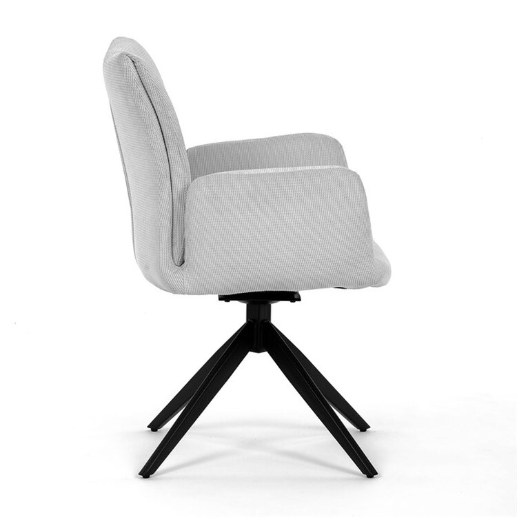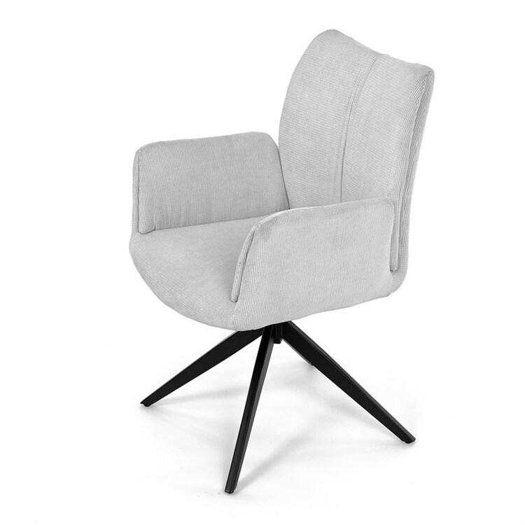 Jídelní židle Autronic je dokonalou kombinací pohodlí a stylu a je navrženo tak, aby pozvedlo úroveň každé kanceláře nebo domácnosti. Tato židle, vyrobená z nádherné bílé reliéfní látky, která hladce doplňuje její elegantní průmyslovou estetiku, slibuje nejen zvýšení vizuální přitažlivosti vašeho prostoru, ale také poskytnutí bezkonkurenčního zážitku z posezení. Její luxusní látkový potah s jemnou texturou a příjemný na dotek vybízí uživatele k dlouhému pohodlí, aniž by to bylo na úkor sofistikovanosti.Nohy židle Autronic, usazené na robustní středové základně, mají povrchovou úpravu z výrazného černého kovu, který nápadně kontrastuje s měkkým čalouněným sedákem. Tato sofistikovaná konstrukce zajišťuje stabilitu a odolnost, takže je vhodná pro sezení téměř u každého pracovního nebo jídelního stolu. Moderní styl židle podtrhuje praktická funkce otáčení o 90°, která umožňuje snadný pohyb a všestrannost v jakémkoli pracovním prostoru nebo jídelně.K ergonomickému designu židle přispívají promyšleně přiložené područky, které poskytují potřebnou oporu pro dlouhodobou produktivitu nebo klidné stolování. Židle Autronic bez námahy spojuje funkčnost se špičkovým designem, což zaručuje, že vynikne jako volba pro podniky, které chtějí vybavit své prostory předměty vypovídajícími o luxusu a profesionálním vkusu. Její industriální styl v kombinaci s pohodlím a praktickými funkcemi z ní činí nepostradatelný doplněk každého moderního pracoviště.