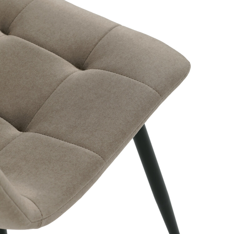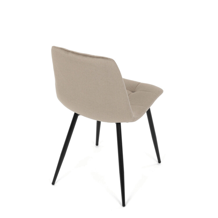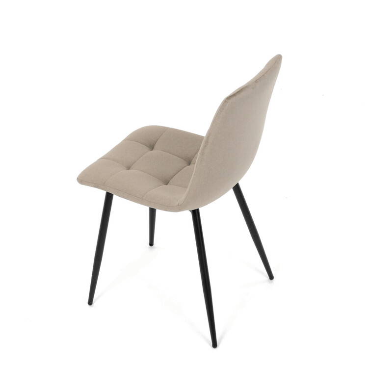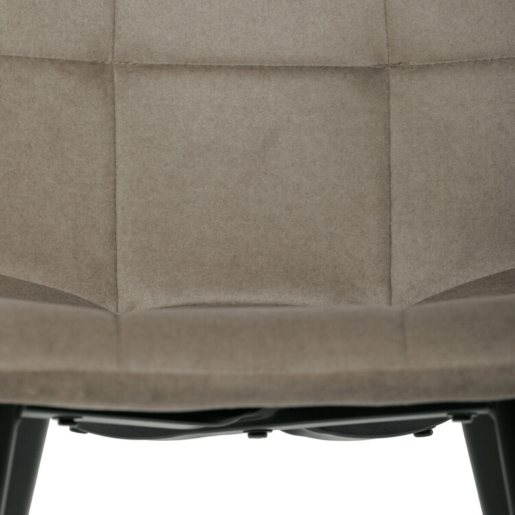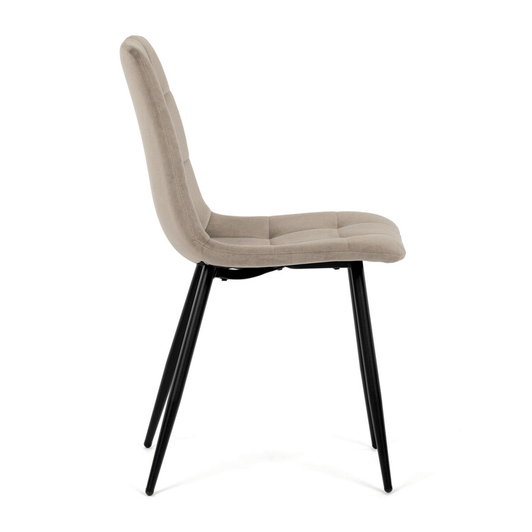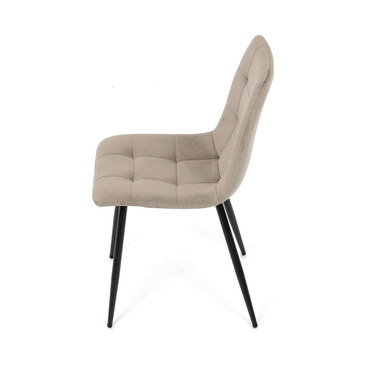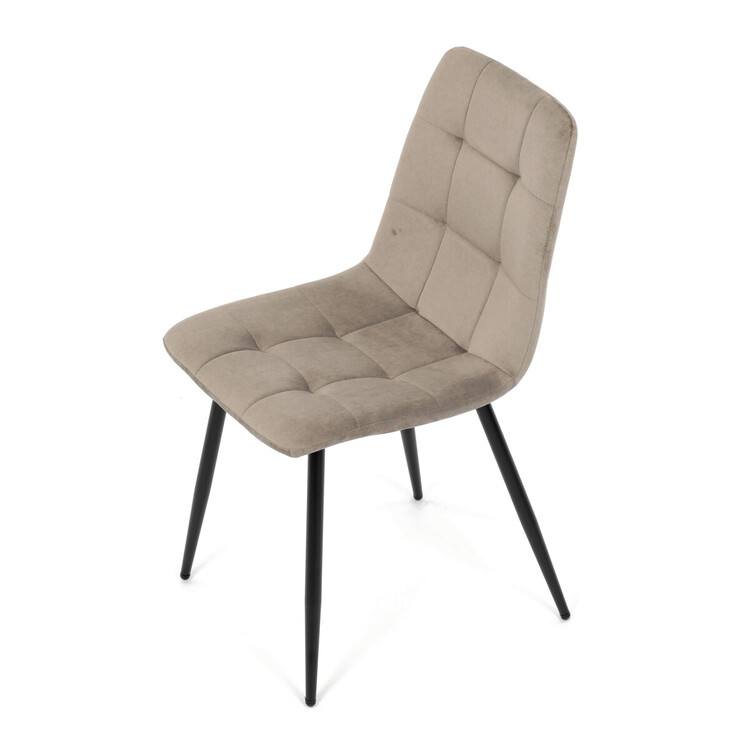 Jídelní židle s označením DCL-X7015 CAP2 kombinuje pohodlí a moderní design díky potahu z béžové sametové látky s výrazným prošitím, které dodává sedáku i opěradlu zajímavou texturu. Stabilní kovové nohy v černém matném provedení zajišťují pevnou oporu a dlouhou životnost, přičemž jejich úhel sklonu přispívá k celkové stabilitě židle. Sedák je ergonomicky tvarovaný pro komfortní sezení bez područek, což umožňuje snadné zasunutí pod stůl a větší variabilitu při uspořádání jídelního prostoru. Díky kvalitnímu zpracování a použitým materiálům je židle vhodná pro každodenní použití v domácnostech i komerčních prostorách.