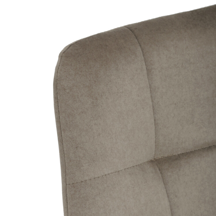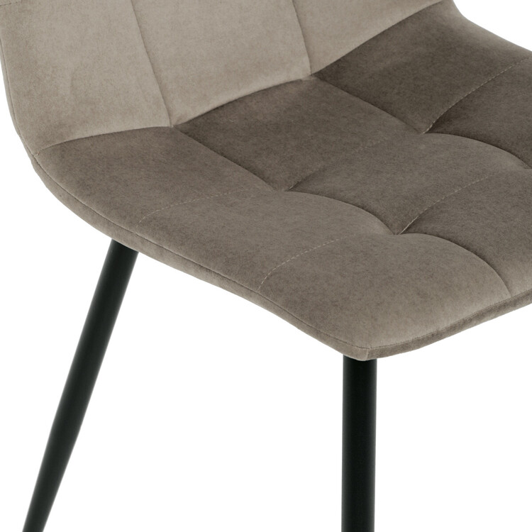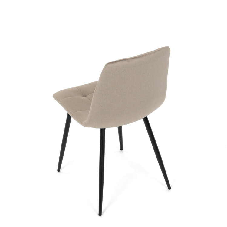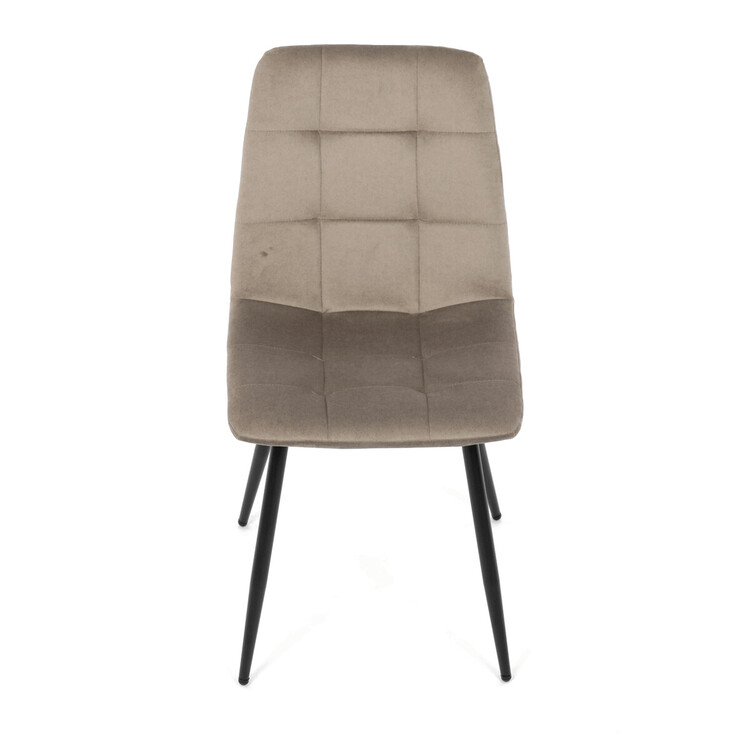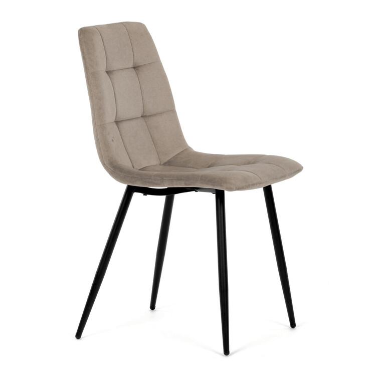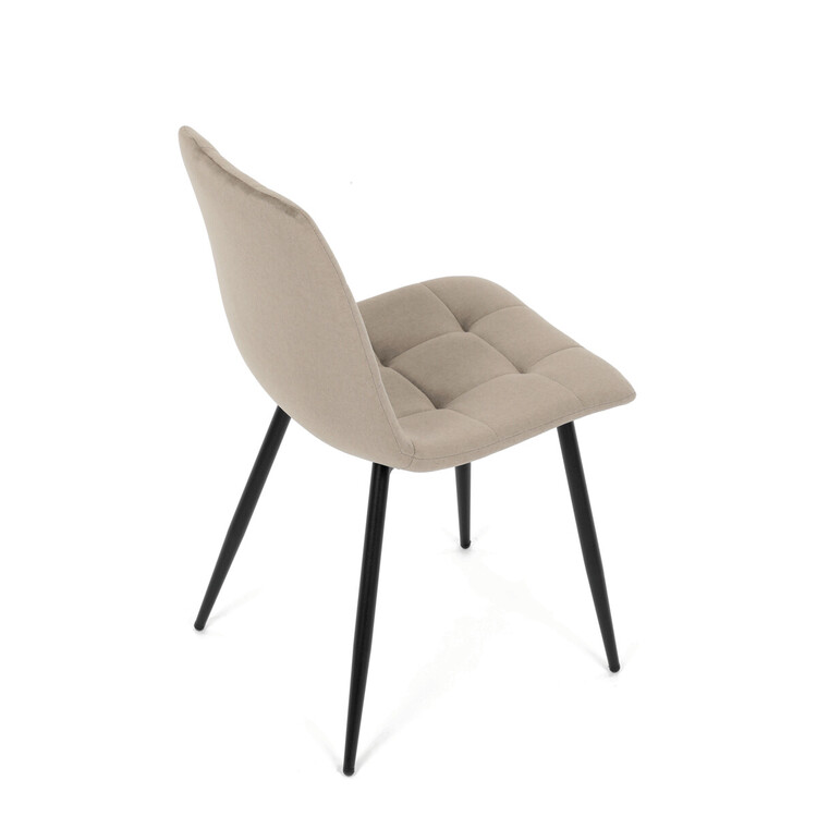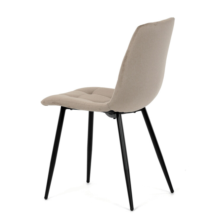 Jídelní židle s označením DCL-X7015 CAP2 kombinuje pohodlí a moderní design díky potahu z béžové sametové látky s výrazným prošitím, které dodává sedáku i opěradlu zajímavou texturu. Stabilní kovové nohy v černém matném provedení zajišťují pevnou oporu a dlouhou životnost, přičemž jejich úhel sklonu přispívá k celkové stabilitě židle. Sedák je ergonomicky tvarovaný pro komfortní sezení bez područek, což umožňuje snadné zasunutí pod stůl a větší variabilitu při uspořádání jídelního prostoru. Díky kvalitnímu zpracování a použitým materiálům je židle vhodná pro každodenní použití v domácnostech i komerčních prostorách.