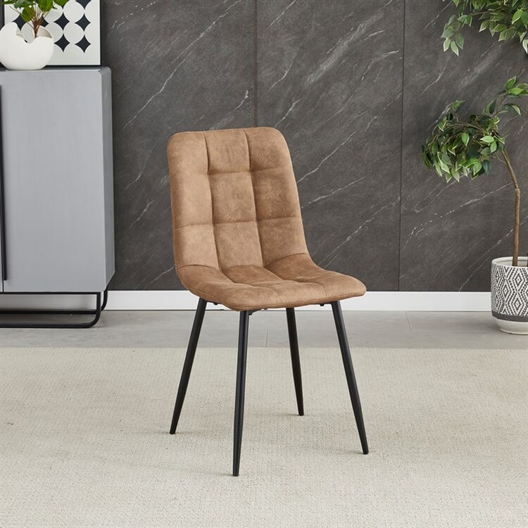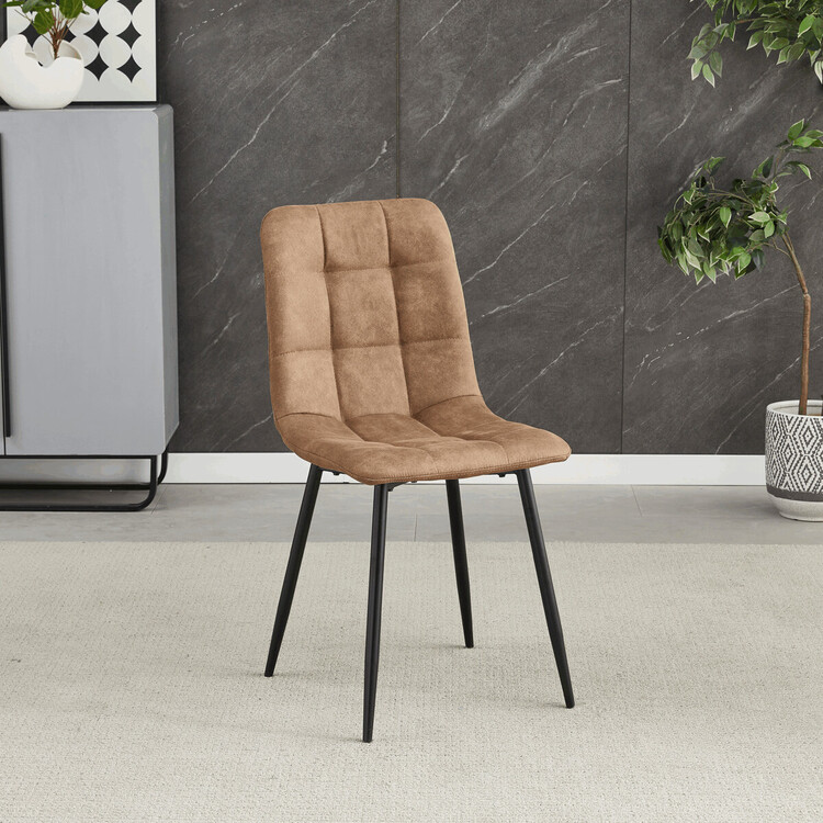 Jídelní židle značky Autronic v moderním industriálním stylu je skvělou volbou pro každou jídelnu. Potah z látky vintage v hnědém odstínu dodává nábytku osobitý charakter, zatímco elegantní čtvercové prošívání podtrhuje její vzhled. Černé kovové nohy poskytují stabilitu a ladí s minimalistickým designem. Komfort při sezení zajišťuje měkké polstrování z PU pěny, díky kterému je židle ideální jak pro každodenní používání, tak pro slavnostní chvíle.