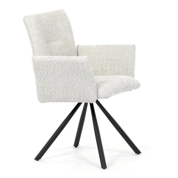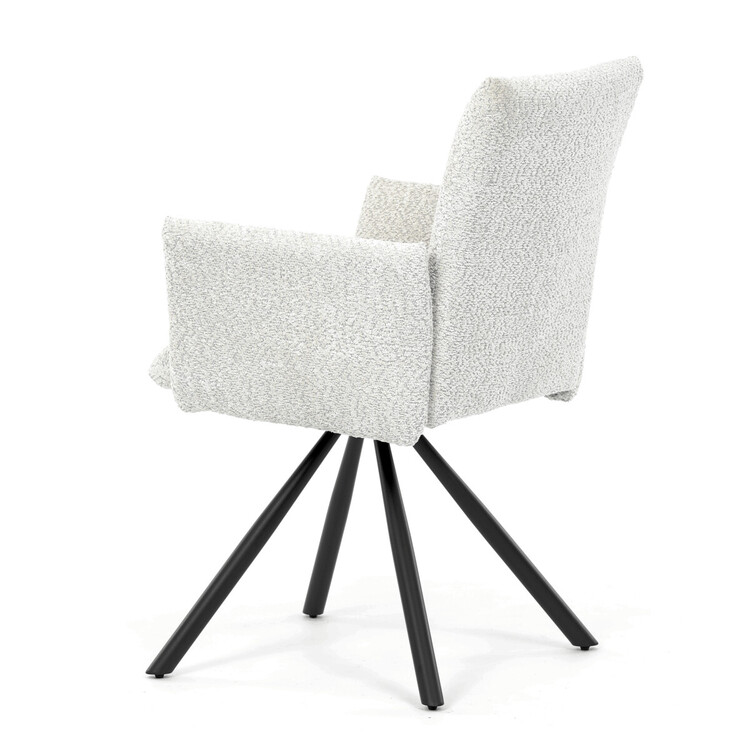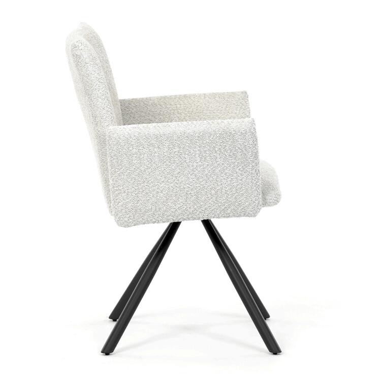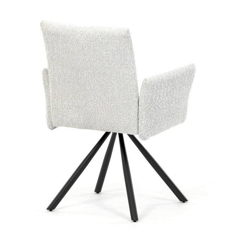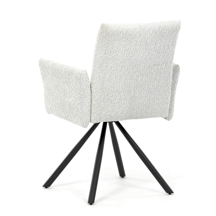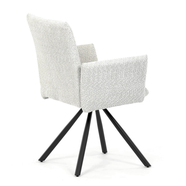Tato moderní jídelní židle značky Autronic v industriálním stylu kombinuje pohodlí s funkčností. Otočná židle s robustní kovovou podnoží je vybavena pohodlnými područkami a látkou Bouclé, která zajišťuje příjemný a stylový vzhled. Polstrování z PU pěny nabízí měkké sezení, zatímco otočný mechanismus L90°/P90° s funkcí automatického vracení sedáku do základní polohy umožňuje snadné otáčení pro maximální flexibilitu. Černá kovová centrální podnož dodává židli stabilitu a moderní vzhled. Tato židle je ideální pro elegantní jídelny, kde se kombinuje komfort s moderním designem.