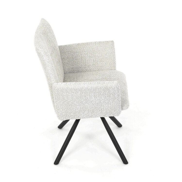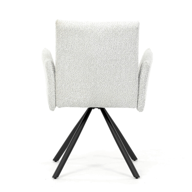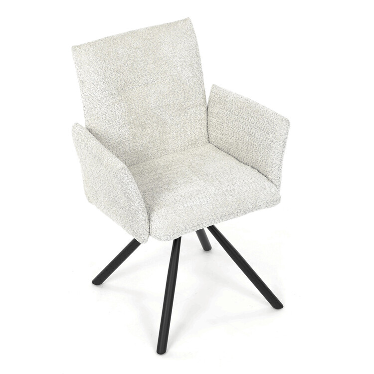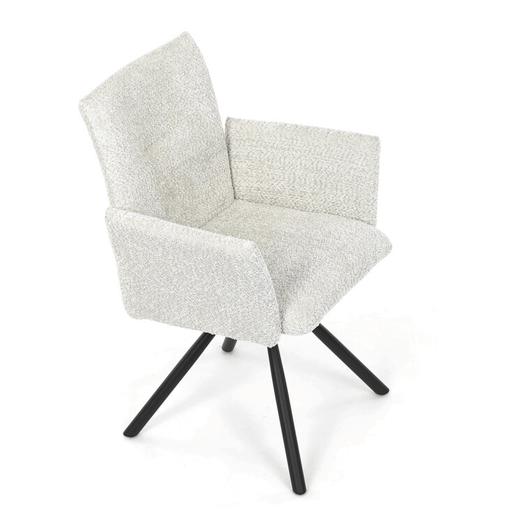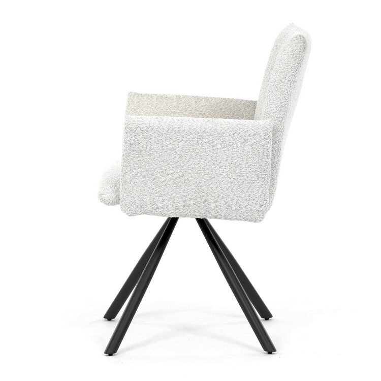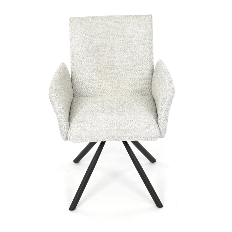 Tato moderní jídelní židle značky Autronic v industriálním stylu kombinuje pohodlí s funkčností. Otočná židle s robustní kovovou podnoží je vybavena pohodlnými područkami a látkou Bouclé, která zajišťuje příjemný a stylový vzhled. Polstrování z PU pěny nabízí měkké sezení, zatímco otočný mechanismus L90°/P90° s funkcí automatického vracení sedáku do základní polohy umožňuje snadné otáčení pro maximální flexibilitu. Černá kovová centrální podnož dodává židli stabilitu a moderní vzhled. Tato židle je ideální pro elegantní jídelny, kde se kombinuje komfort s moderním designem.