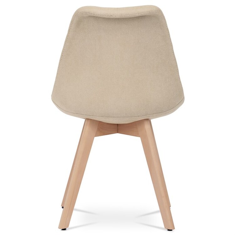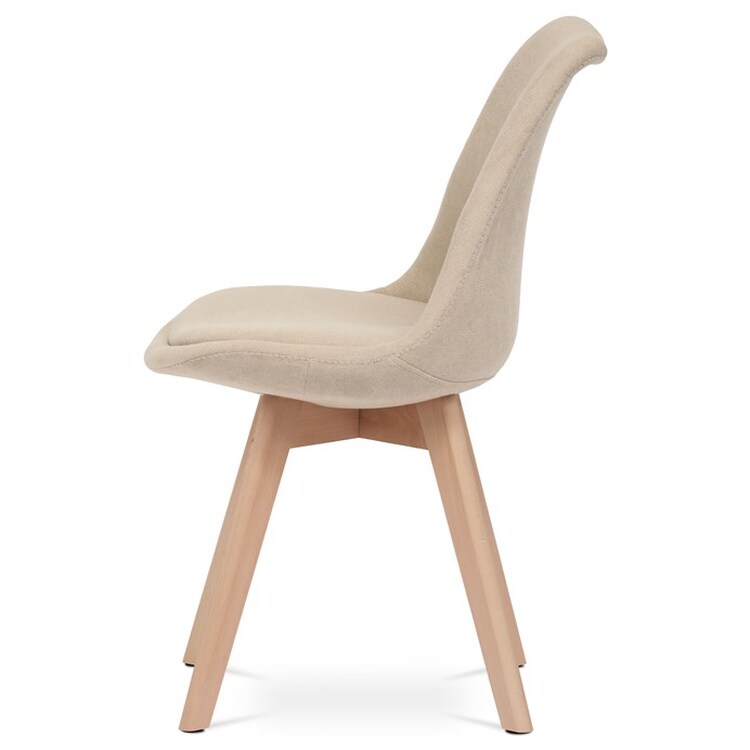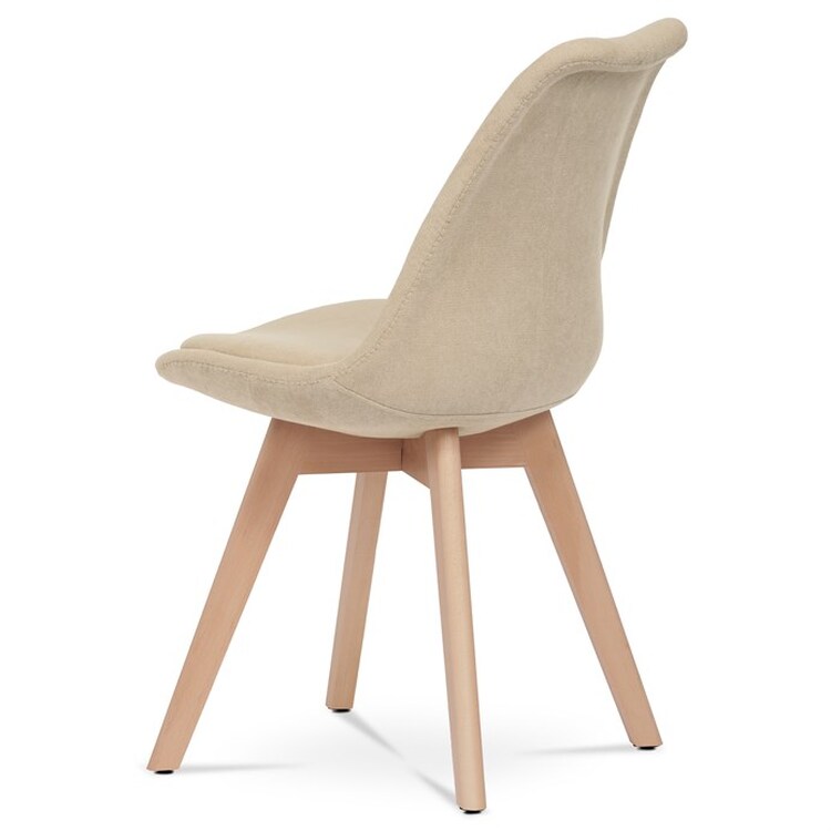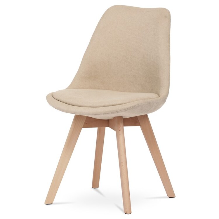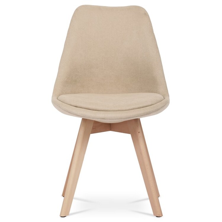 Jídelní židle s tvarovaným čalouněným korpusem v krémové barvě, vybavená pohodlným polstrovaným sedákem, který ladí s opěrkou. Nohy jsou vyrobeny z bukového masivu v přírodním odstínu, dodávající židli stabilitu a estetický kontrast. Židle je navržena s ohledem na pohodlí i styl, což ji činí ideální volbou pro moderní interiéry. Plastové kluzáky na nohách zajišťují ochranu podlahové krytiny před poškozením. Díky svému elegantnímu skandinávskému designu je vhodná do kuchyní, pracoven i obývacích pokojů.