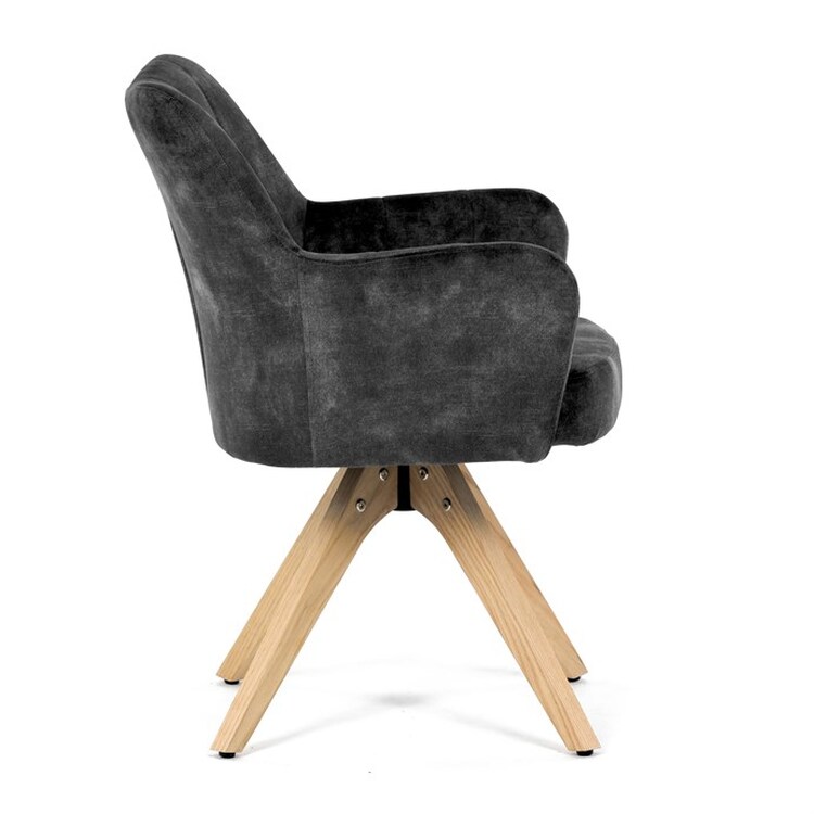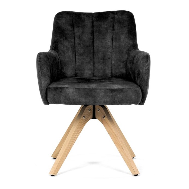 Elegantní čalouněná židle od značky Autronic zaujme na první pohled svou černou sametovou látkou, která dodává interiéru moderní šmrnc. Masivní nohy v přírodní barvě vytvářejí stabilní základ a skvěle harmonizují s celkovým designem. Komfortní područky zajistí pohodlí při sezení. Navíc, integrovaný 360° otočný mechanismus poskytuje maximální flexibilitu a pohybový komfort. Ideální volba pro stylové i funkční bydlení.