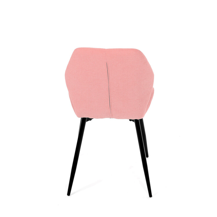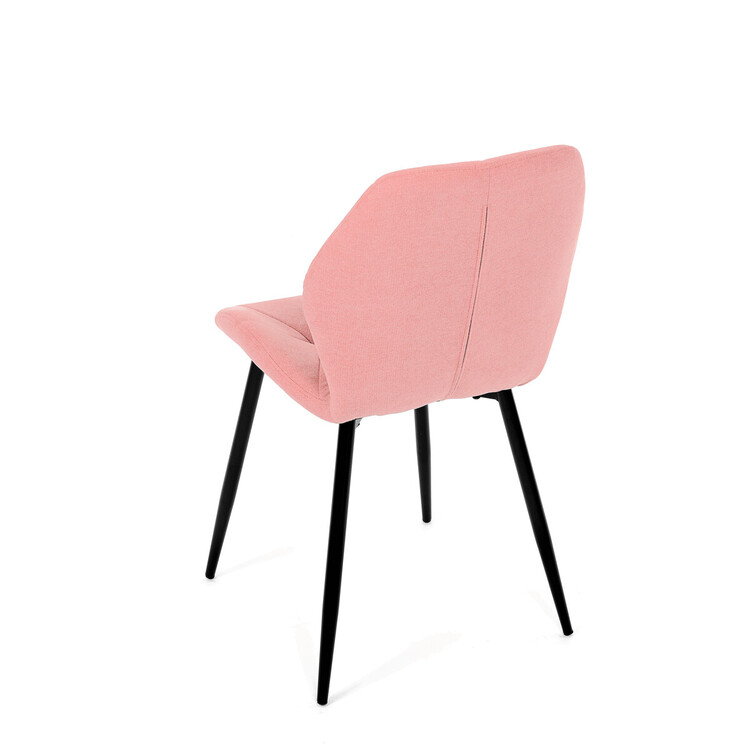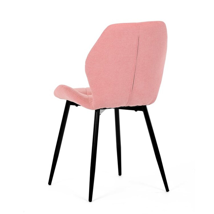 Tato moderní jídelní židle v jemné růžové barvě je skvělým doplňkem každého interiéru. Díky svému elegantnímu designu a pohodlnému čalounění je ideální volbou pro Vaši jídelnu, kuchyň nebo pracovní prostor.Židle je čalouněná kvalitní látkou, která je měkká na dotek a zároveň odolná proti opotřebení. Ergonomicky tvarované sedadlo a opěradlo s dekorativním prošíváním poskytují vysoký komfort i při delším sezení. Židle stojí na pevných kovových nohách v černém provedení, které zajišťují stabilitu a dlouhou životnost. Nohy jsou elegantně zkosené, což dodává židli moderní vzhled a zajišťuje pevnou stabilitu.