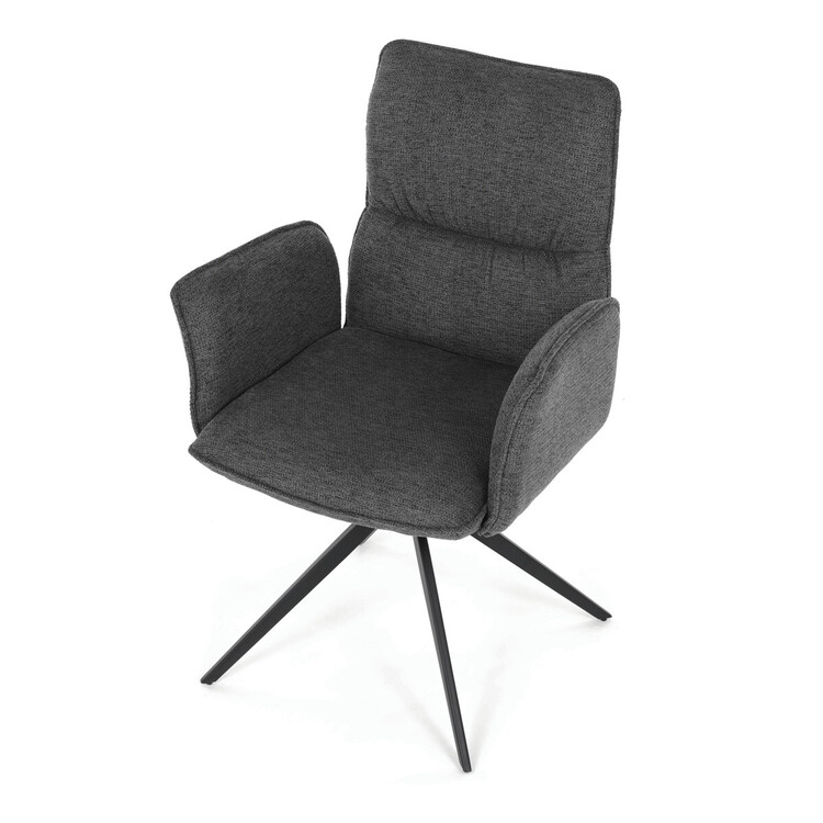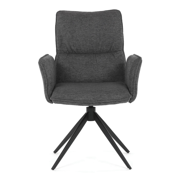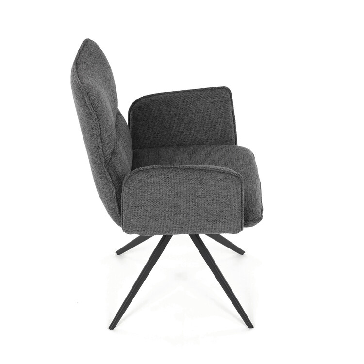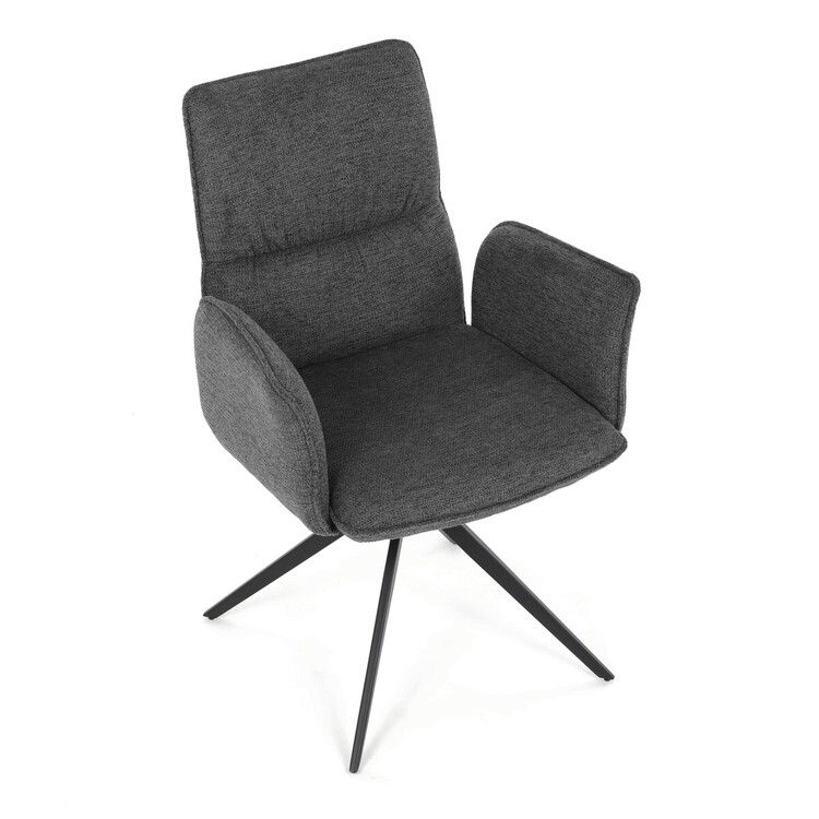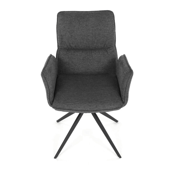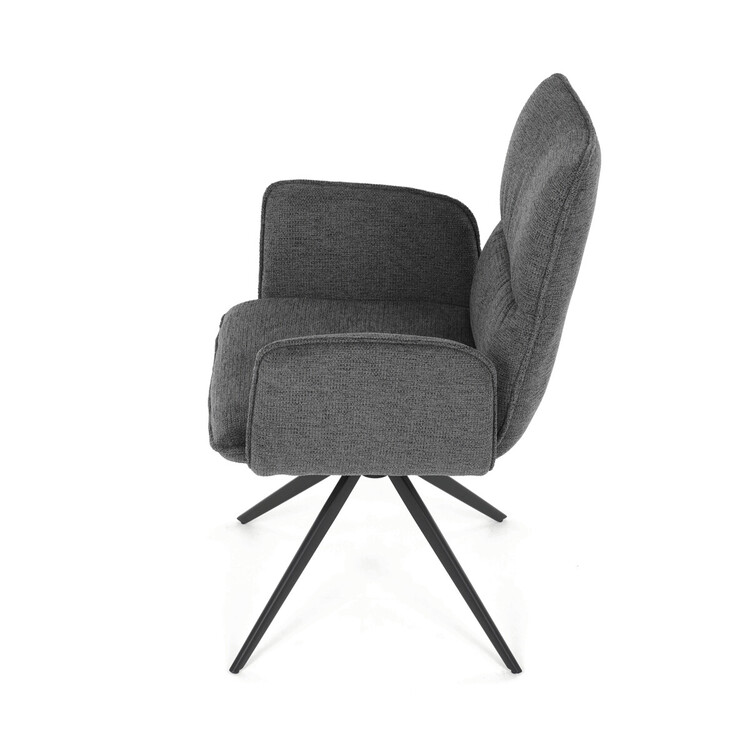 Jídelní židle DCH-D1328 GREY2 značky Autronic vyniká 360° vratným mechanismem, který umožňuje plynulý a tichý otáčivý pohyb pro maximální flexibilitu při sezení. Čalounění z kvalitní šedé látky poskytuje příjemný a měkký povrch s decentní texturou, která zvyšuje komfort i estetickou hodnotu. Konstrukce područek je pevně integrována do čalouněné části, což zajišťuje pohodlnou oporu paží během sezení. Stabilní podnož je vyrobena z černě práškovaného kovu, který garantuje vysokou pevnost a odolnost proti opotřebení, přičemž design podnože se skládá ze čtyř úhlových nohou rozložených do širokého stabilního tvaru. Ergonomicky tvarovaný sedák a opěradlo podporují správné držení těla a přispívají k dlouhodobému pohodlí při používání. Židle je vhodná pro moderní jídelny i pracovní prostory, kde je vyžadována kombinace komfortu a funkčnosti. Nosnost židle odpovídá standardním požadavkům na jídelní sezení a její rozměry jsou optimalizovány pro univerzální použití v interiéru.