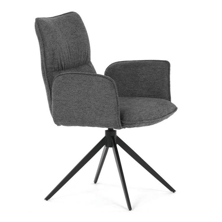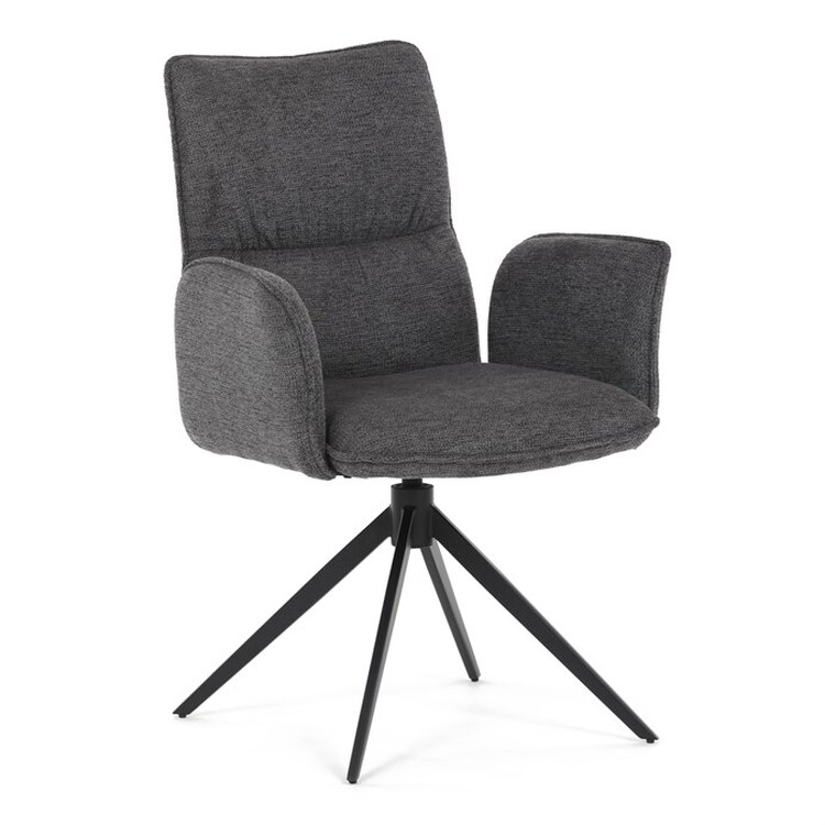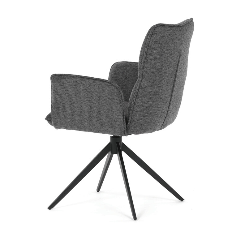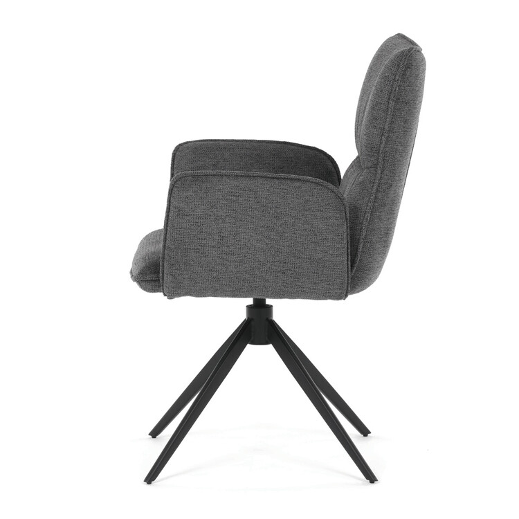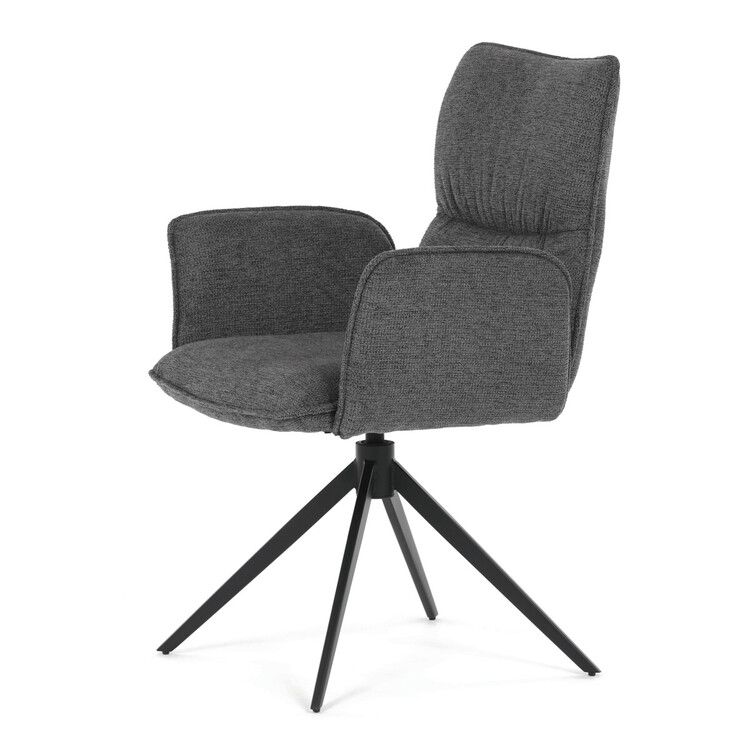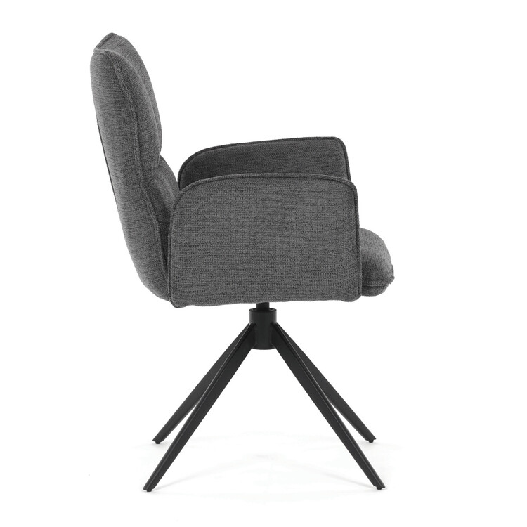Jídelní židle DCH-D1328 GREY2 značky Autronic vyniká 360° vratným mechanismem, který umožňuje plynulý a tichý otáčivý pohyb pro maximální flexibilitu při sezení. Čalounění z kvalitní šedé látky poskytuje příjemný a měkký povrch s decentní texturou, která zvyšuje komfort i estetickou hodnotu. Konstrukce područek je pevně integrována do čalouněné části, což zajišťuje pohodlnou oporu paží během sezení. Stabilní podnož je vyrobena z černě práškovaného kovu, který garantuje vysokou pevnost a odolnost proti opotřebení, přičemž design podnože se skládá ze čtyř úhlových nohou rozložených do širokého stabilního tvaru. Ergonomicky tvarovaný sedák a opěradlo podporují správné držení těla a přispívají k dlouhodobému pohodlí při používání. Židle je vhodná pro moderní jídelny i pracovní prostory, kde je vyžadována kombinace komfortu a funkčnosti. Nosnost židle odpovídá standardním požadavkům na jídelní sezení a její rozměry jsou optimalizovány pro univerzální použití v interiéru.