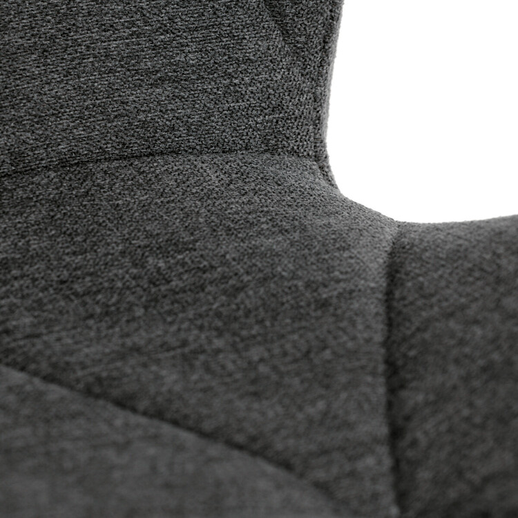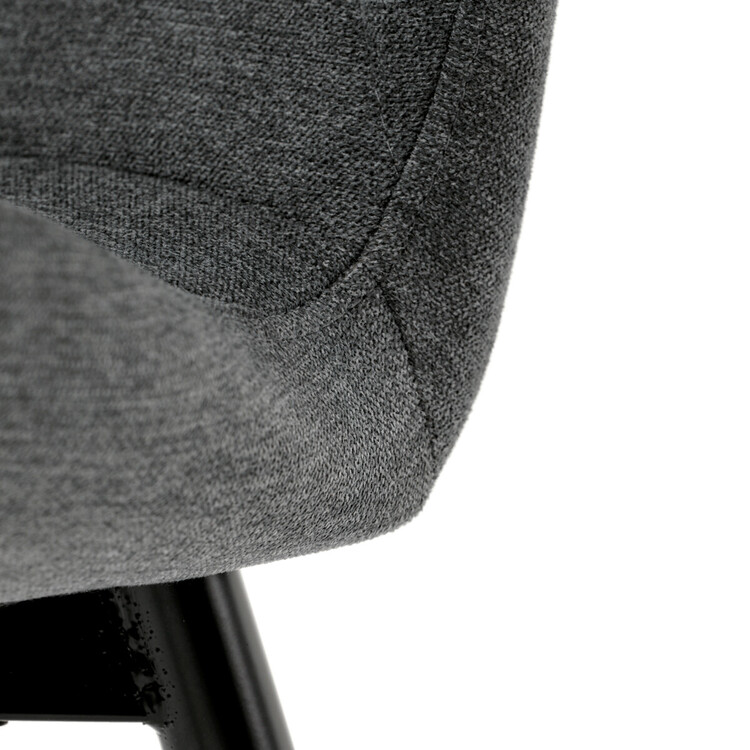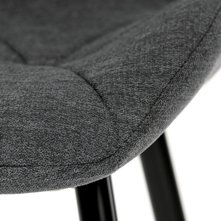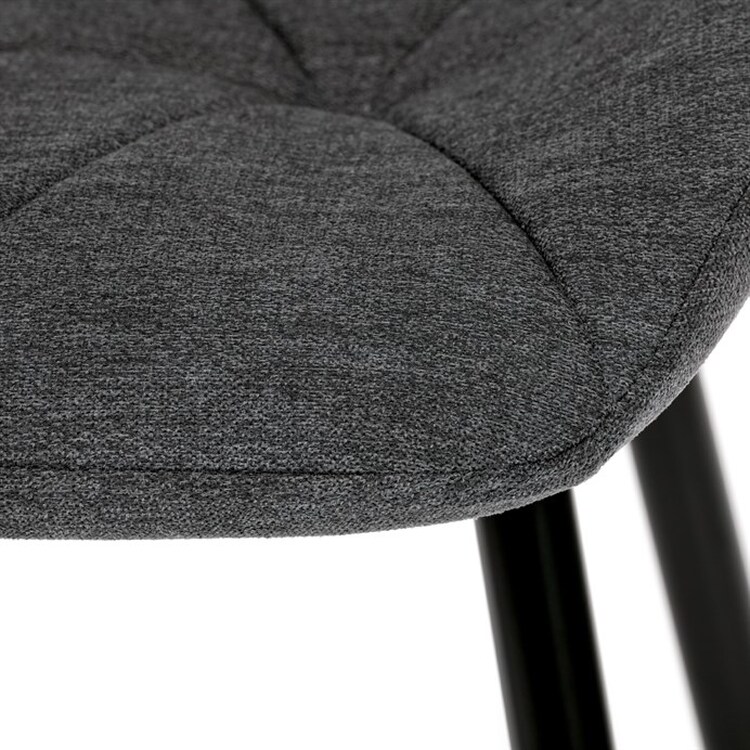 Tato moderní jídelní židle v tmavě šedé barvě je skvělým doplňkem každého interiéru. Díky svému elegantnímu designu a pohodlnému čalounění je ideální volbou pro Vaši jídelnu, kuchyň nebo pracovní prostor.Židle je čalouněná kvalitní tmavě šedou látkou, která je měkká na dotek a zároveň odolná proti opotřebení. Ergonomicky tvarované sedadlo a opěradlo s dekorativním prošíváním poskytují vysoký komfort i při delším sezení. Židle stojí na pevných kovových nohách v černém provedení, které zajišťují stabilitu a dlouhou životnost. Nohy jsou elegantně zkosené, což dodává židli moderní vzhled a zajišťuje pevnou stabilitu.