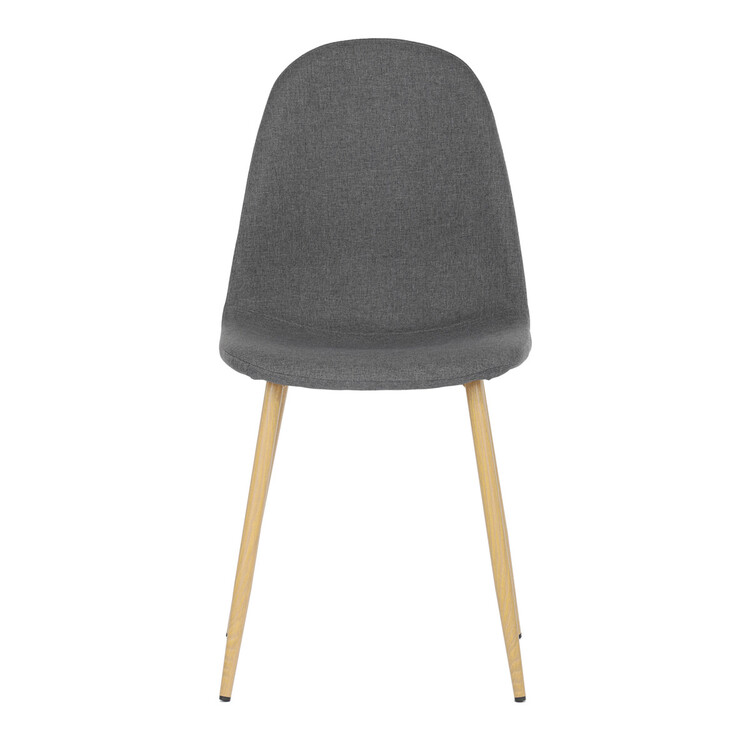 Jídelní židle s označením CT-972 GREY2 kombinuje jednoduchý design s praktickým provedením vhodným do moderních i klasických interiérů. Sedák a opěradlo jsou potažené šedou látkou, která nabízí příjemný povrch pro sezení a snadnou údržbu. Pevné kovové nohy v dekoru dubu zajišťují stabilitu a dlouhou životnost židle. Absence područek umožňuje snadné zasunutí pod stůl a šetří prostor v jídelně. Židle není otočná, což přispívá k její pevnosti a jednoduchosti užívání.