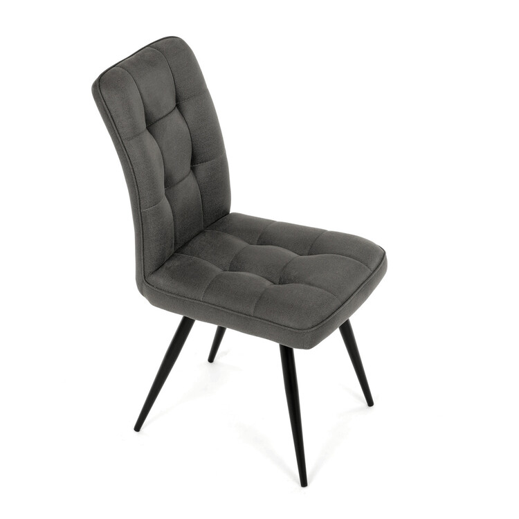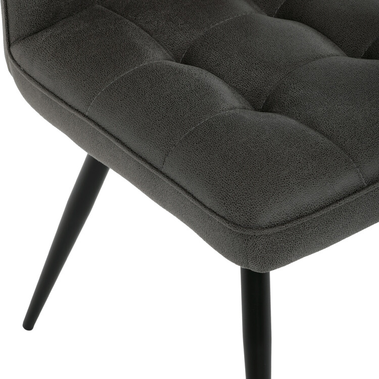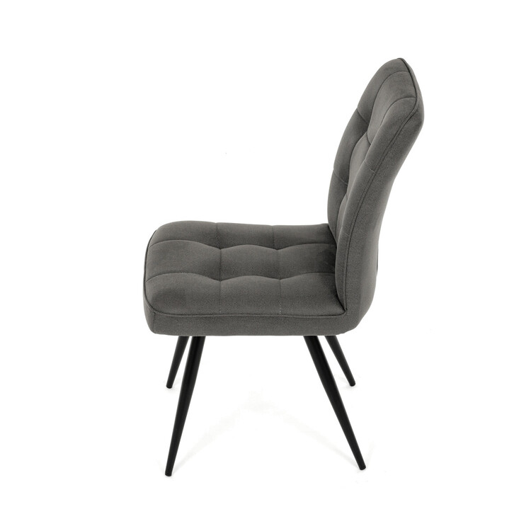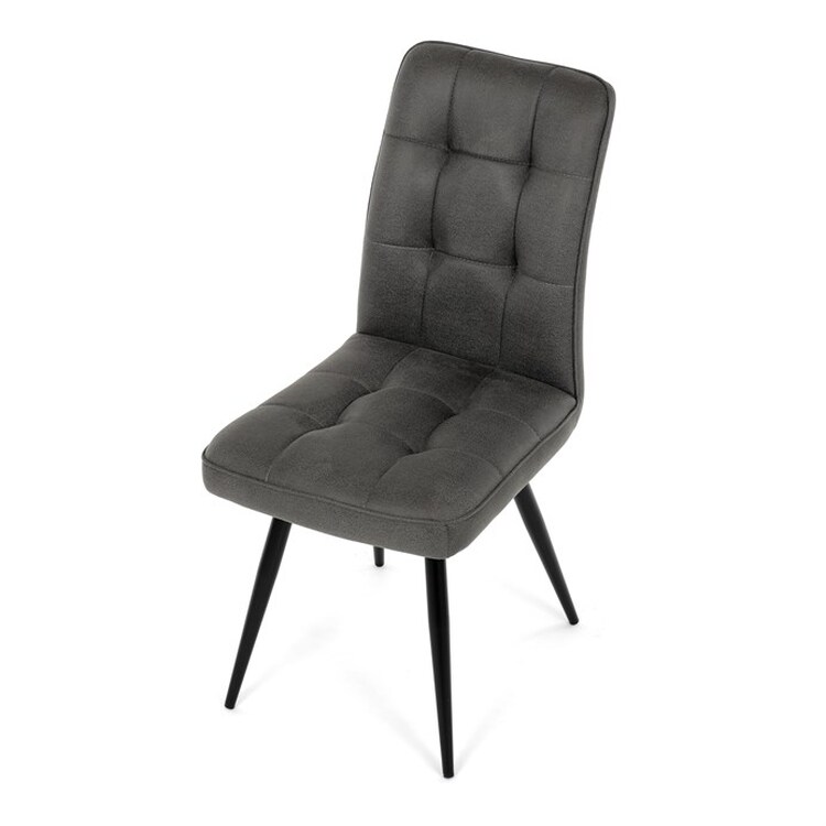 Moderní jídelní židle značky Autronic v elegantní šedé barvě je ideální volbou pro stylové a pohodlné stolování. Měkké čalounění z odolné látky imitující kůži, s výplní z PU pěny, zajišťuje vysoký komfort při sezení. Černé kovové nohy dodávají židli stabilitu a moderní vzhled. Prošívaný design sedáku a opěráku přidává na atraktivitě a zároveň zachovává jednoduchý a nadčasový styl. Tato židle se skvěle hodí do každé jídelny, která hledá spojení praktičnosti a elegance.