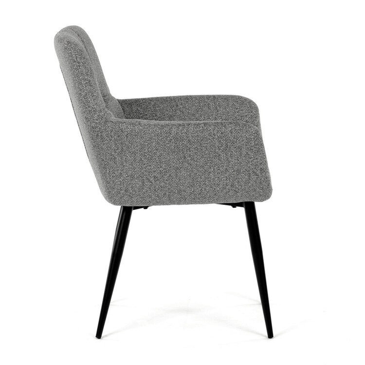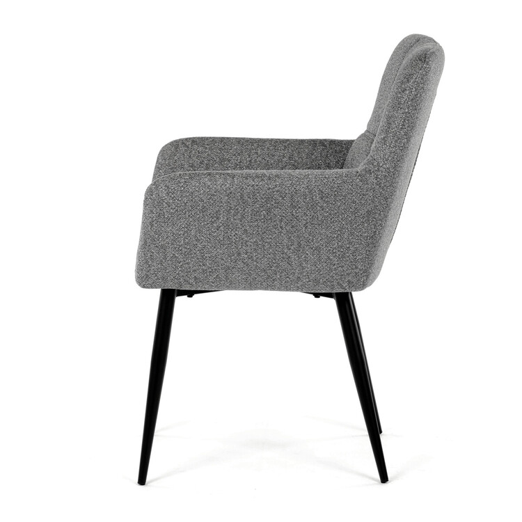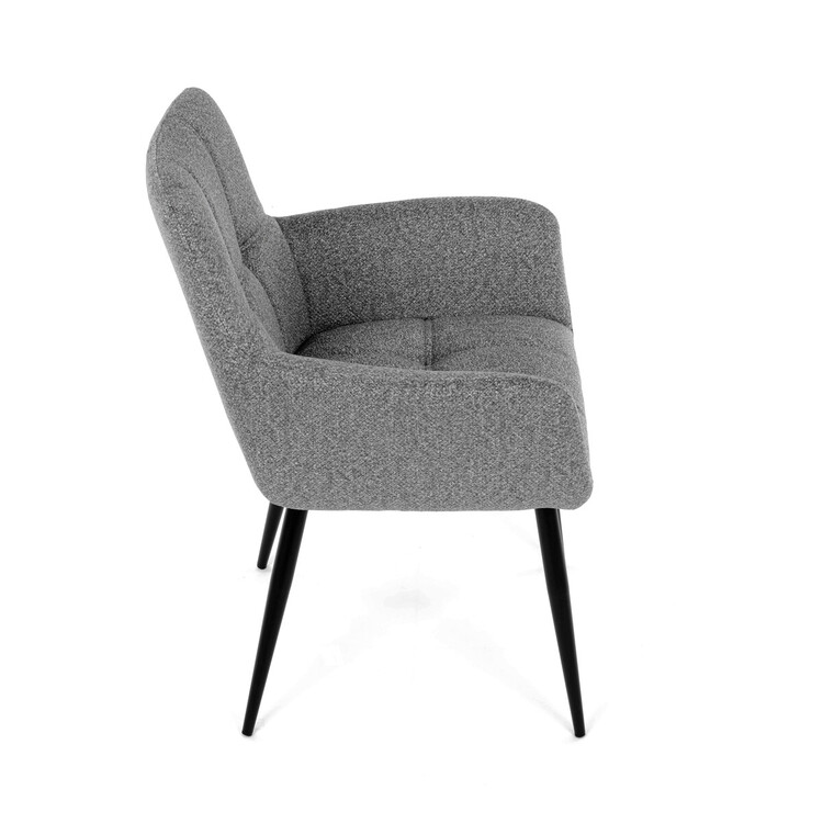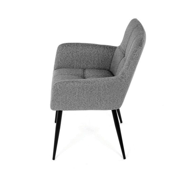 Elegantní šedá jídelní židle od značky Autronic skvěle doplní moderní i klasické interiéry. Tato stylová židle nabízí vysoký komfort díky čalounění z kvalitní látky a mekkému sedáku z PU pěny. Černé kovové nohy zajišťují stabilitu a dodávají židli jemný industriální nádech. Komfortní područky a ergonomické provedení oceníte při každém posezení. Židle se hodí nejen do domácí jídelny, ale i do restauračních prostor, kde vytvoří útulnou atmosféru.