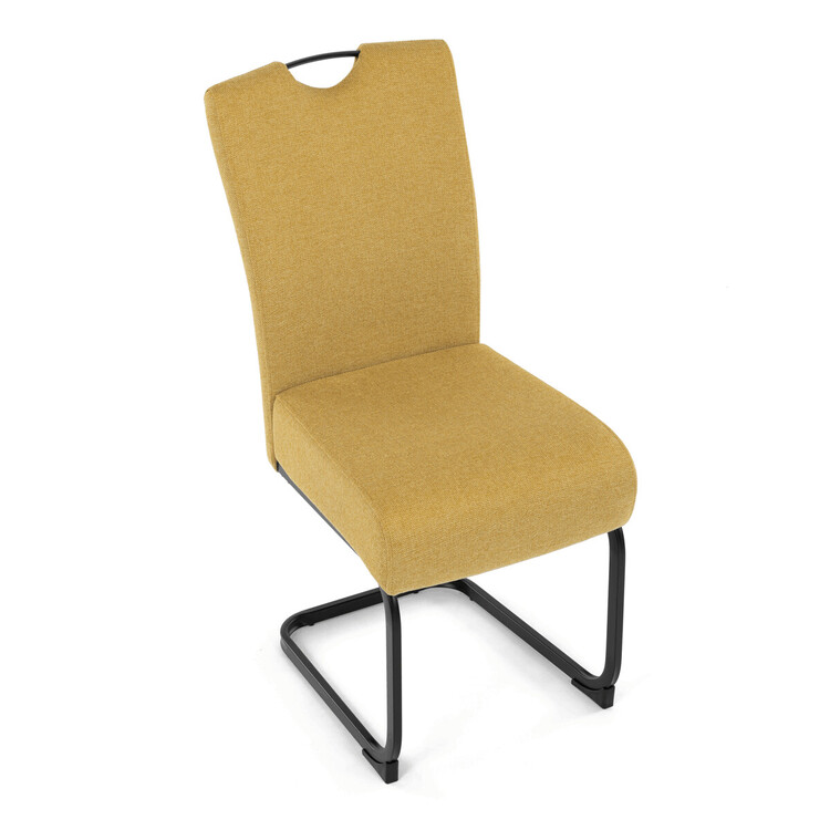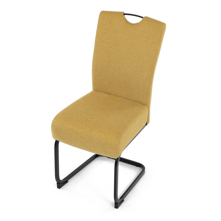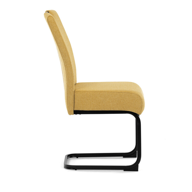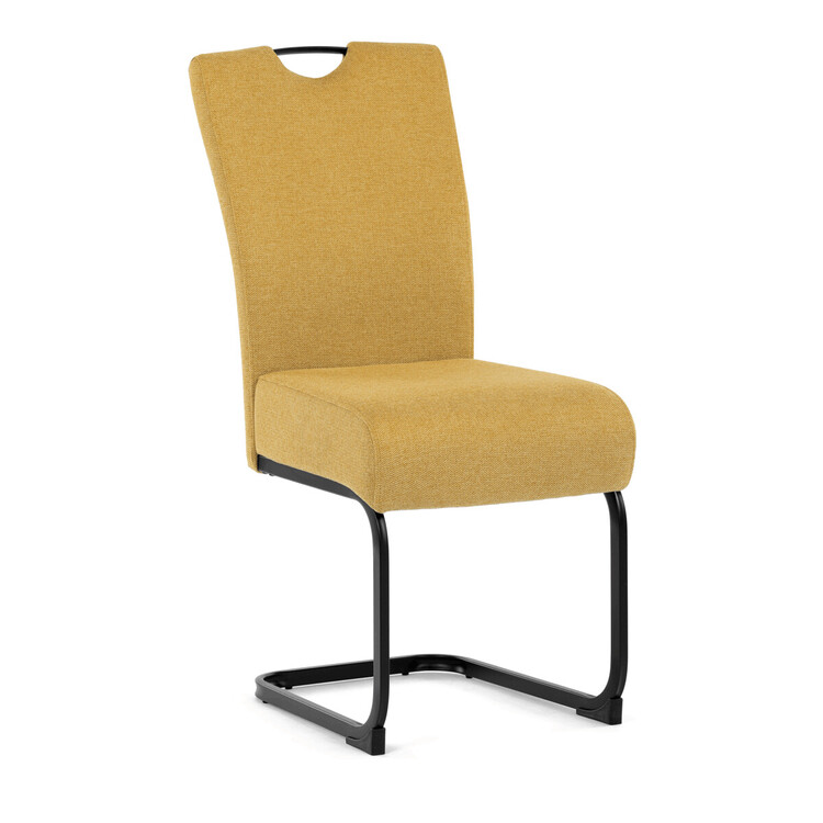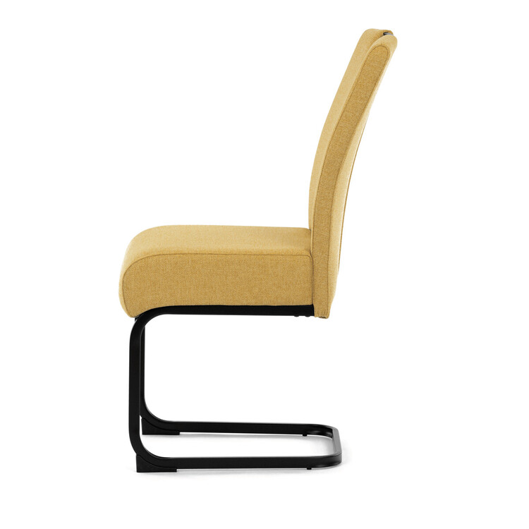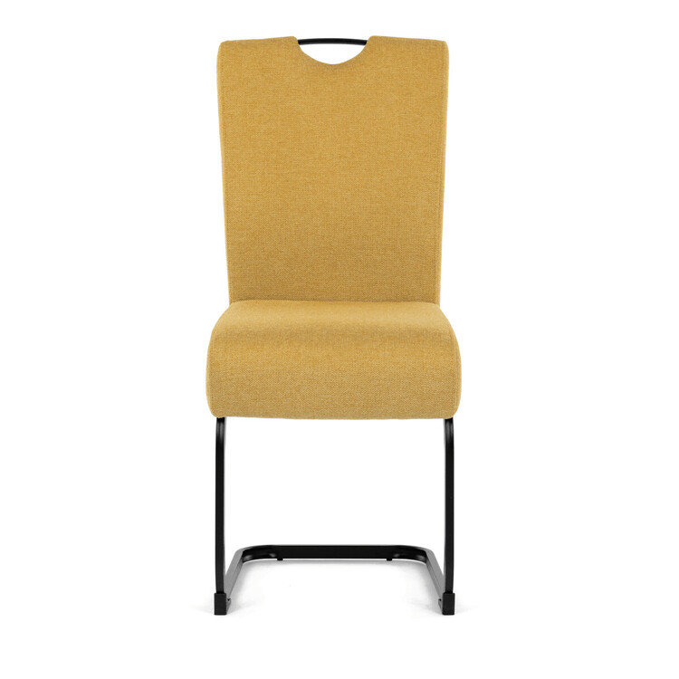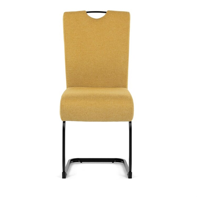 Jídelní židle DCL-E2008 YEL2 značky Autronic vyniká kombinací komfortu a odolnosti díky taštičkovým pružinám integrovaným v sedáku, které zajišťují optimální oporu a dlouhodobou elasticitu. Potah je vyroben z kvalitní žluté látky s jemnou texturou, která přináší příjemný pocit při sezení a zároveň esteticky oživí interiér. Konstrukce židle je tvořena pevnou kovovou podnoží v černém matném provedení, která garantuje stabilitu a vyšší nosnost vhodnou i pro náročnější uživatele. Design opěráku je ergonomicky tvarovaný s praktickým madlem v horní části, které usnadňuje manipulaci a přenášení židle. Absence područek umožňuje snadné zasunutí židle pod stůl a šetří prostor v jídelně či konferenční místnosti. Celková konstrukce spojuje pevnost kovu s komfortem taštičkových pružin, což zajišťuje pohodlné sezení i při delším používání.