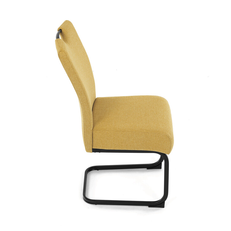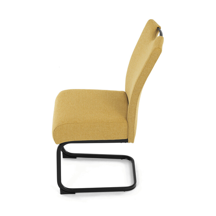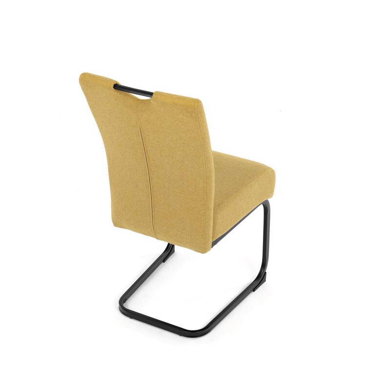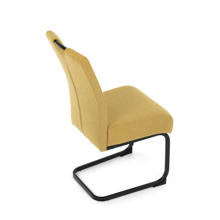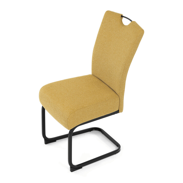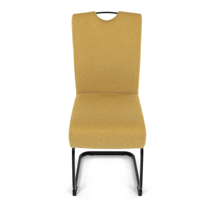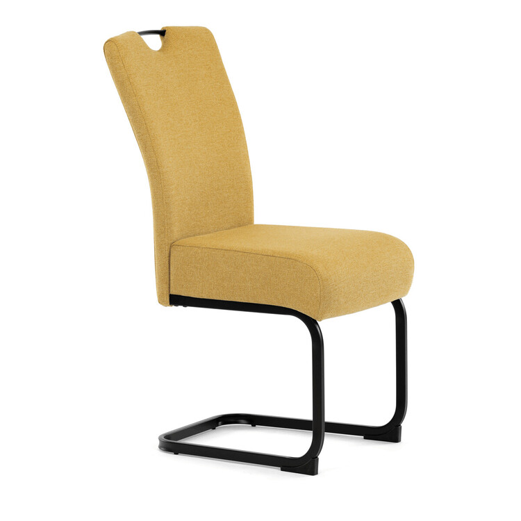 Jídelní židle DCL-E2008 YEL2 značky Autronic vyniká kombinací komfortu a odolnosti díky taštičkovým pružinám integrovaným v sedáku, které zajišťují optimální oporu a dlouhodobou elasticitu. Potah je vyroben z kvalitní žluté látky s jemnou texturou, která přináší příjemný pocit při sezení a zároveň esteticky oživí interiér. Konstrukce židle je tvořena pevnou kovovou podnoží v černém matném provedení, která garantuje stabilitu a vyšší nosnost vhodnou i pro náročnější uživatele. Design opěráku je ergonomicky tvarovaný s praktickým madlem v horní části, které usnadňuje manipulaci a přenášení židle. Absence područek umožňuje snadné zasunutí židle pod stůl a šetří prostor v jídelně či konferenční místnosti. Celková konstrukce spojuje pevnost kovu s komfortem taštičkových pružin, což zajišťuje pohodlné sezení i při delším používání.