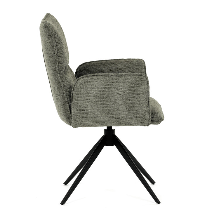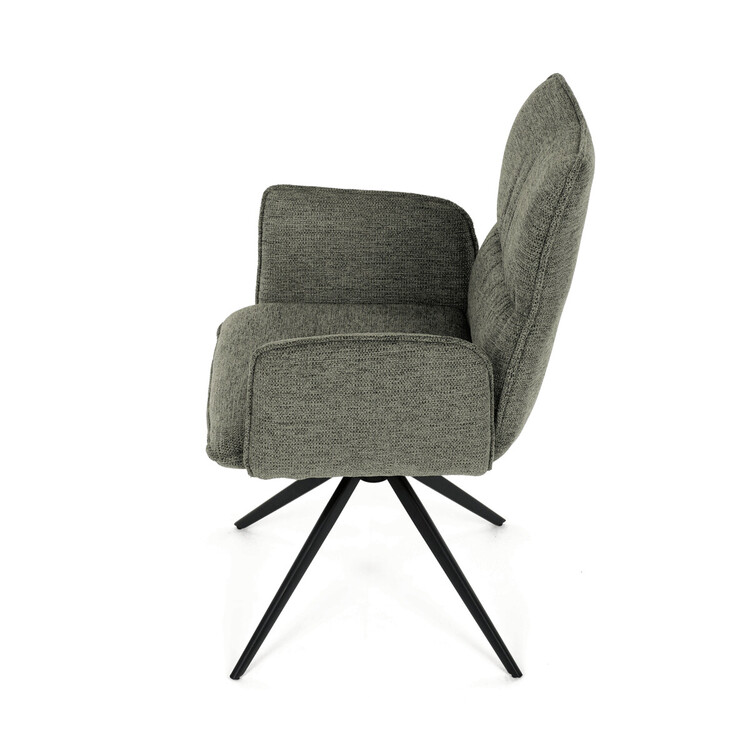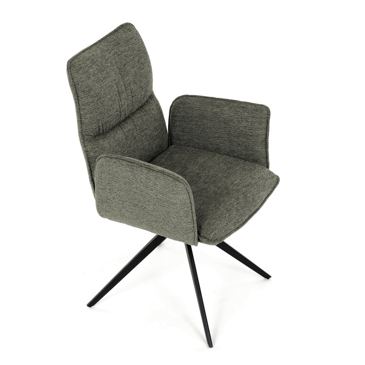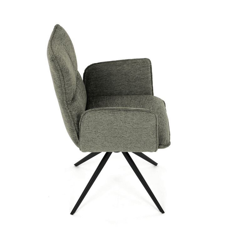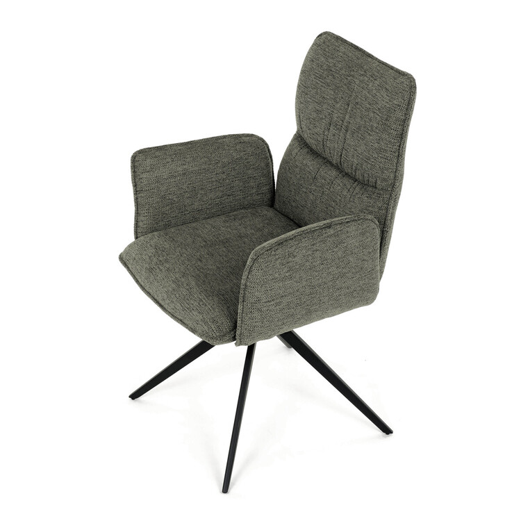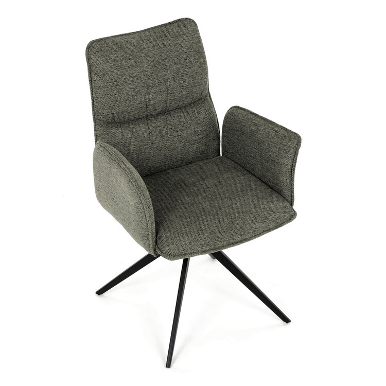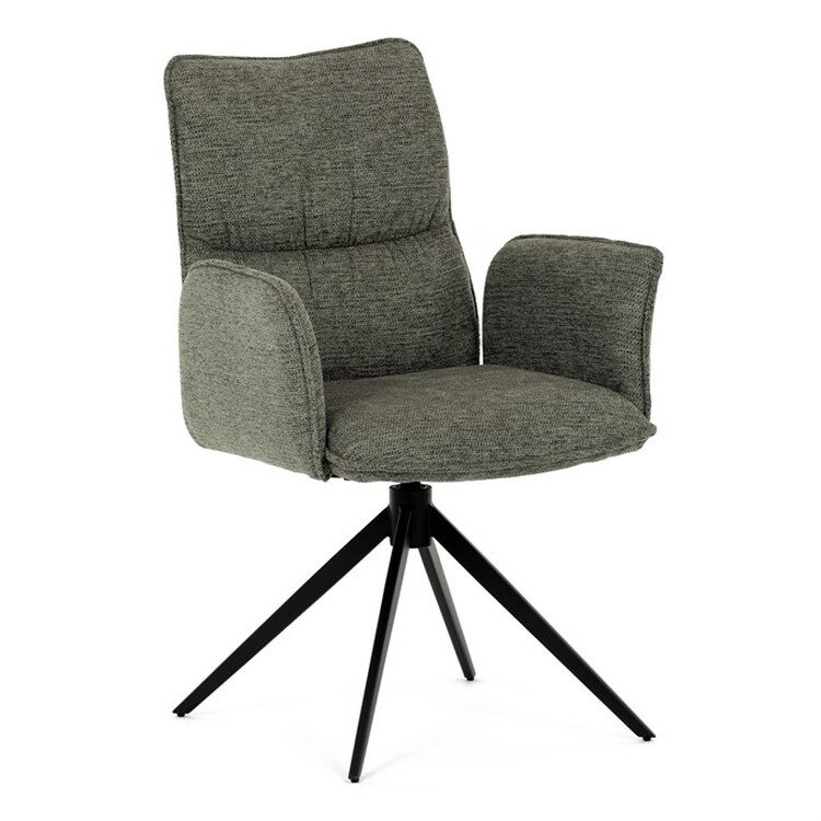 Jídelní židle DCH-D1328 GRN2 značky Autronic vyniká 360° vratným mechanismem, který zajišťuje snadnou otočnost a flexibilitu při sezení. Čalounění z kvalitní zelené látky nabízí příjemný a odolný povrch, který je zároveň prodyšný a komfortní pro delší posezení. Konstrukce židle je podpořena pevnou kovovou podnoží v černé matné úpravě, která garantuje stabilitu a dlouhou životnost. Integrované čalouněné područky přispívají k ergonomii a pohodlí, umožňují uvolněnou pozici rukou během stolování. Sedák i opěradlo jsou anatomicky tvarované a vyplněné měkkou pěnou, která zvyšuje komfort a podporuje správné držení těla. Díky pevné kovové konstrukci nohou je židle vhodná pro každodenní použití v domácnostech i komerčních prostorách. Celkový design kombinuje moderní estetiku s praktickými vlastnostmi, přičemž rozměry a nosnost odpovídají standardním požadavkům jídelních židlí.