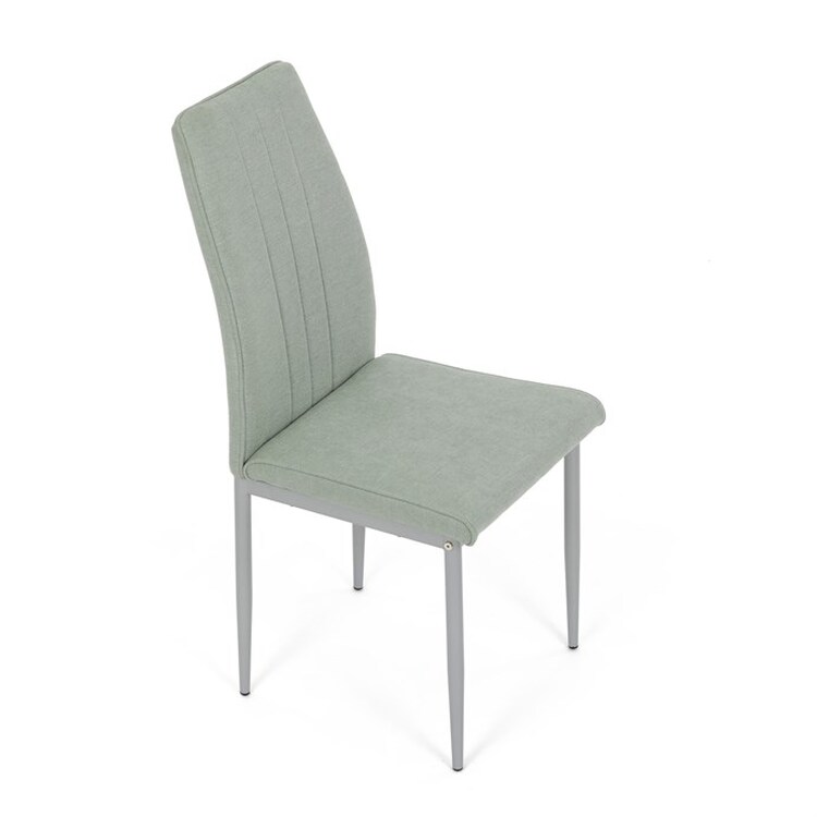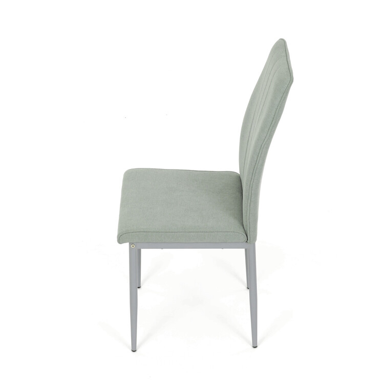 Jídelní židle Autronic v industriálním stylu zaujme svým minimalistickým designem a praktickými vlastnostmi. Potah je vyroben z odolné hladké látky v zelené barvě, který snadno zapadne do různých interiérů. Pohodlí zajišťuje měkká PU pěna ve výplni, zatímco kovové nohy v šedé barvě dodávají stabilitu a pevnost. Elegantní prošívání dodává židli elegantní vzhled. Tento model je skvělou volbou pro moderní i klasické interiéry.