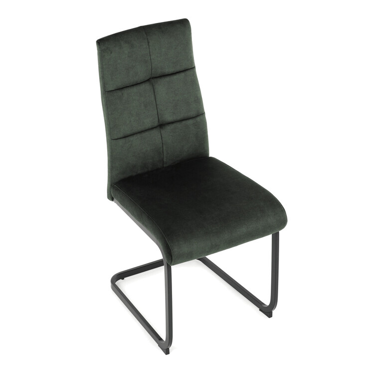 Moderní jídelní židle značky Autronic v zelené barvě zaujme svým elegantním designem a kvalitním matným sametovým čalouněním, které je příjemné na dotek. Pohupová podnož z černého kovu dodává stabilitu a současně stylový vzhled. Ergonomicky tvarované sedadlo a opěradlo zaručují pohodlí i při delším sezení. Tato židle je ideální volbou do moderních interiérů, kde přispěje k vytvoření sofistikované a útulné atmosféry. Perfektní spojení funkčnosti a designu pro vaši jídelnu.