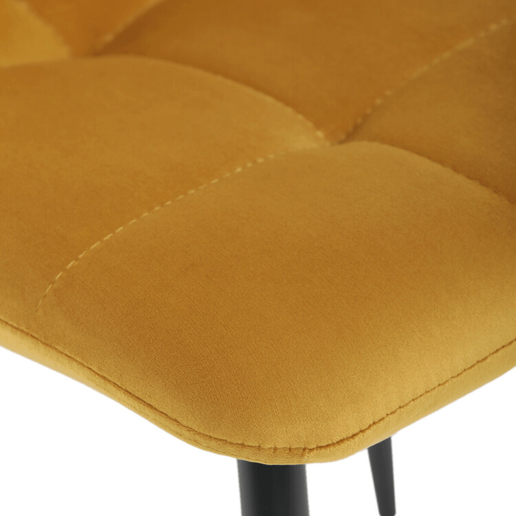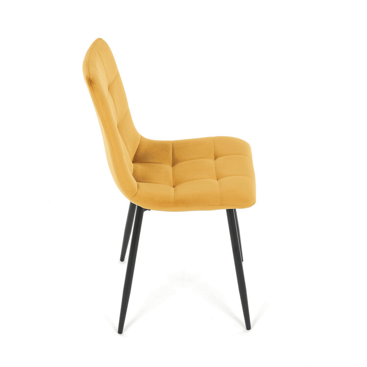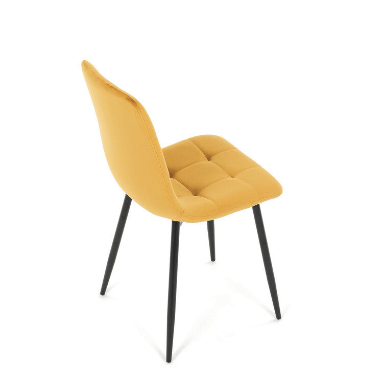 Jídelní židle značky Autronic v elegantní žluté barvě je ideální volbou pro stylové interiéry. Čalounění ze sametové látky působí luxusně a zajišťuje pohodlí při sezení. Decentní prošívání zdůrazňuje precizní zpracování, zatímco stabilní černé kovové nohy podtrhují minimalistický vzhled s industriálním nádechem. Díky kvalitnímu polstrování z PU pěny je vhodná pro každodenní stolování i delší posezení. Tato židle přináší harmonii mezi funkčností a moderním designem, který oživí každou jídelnu.