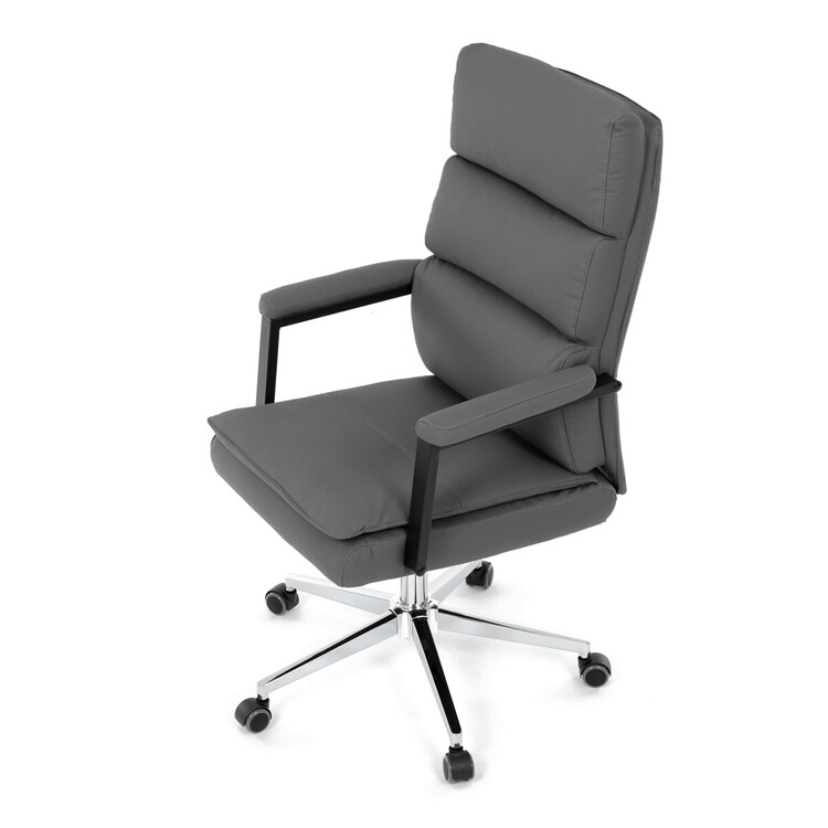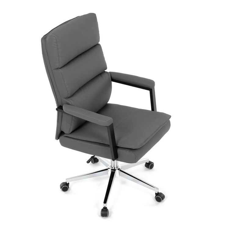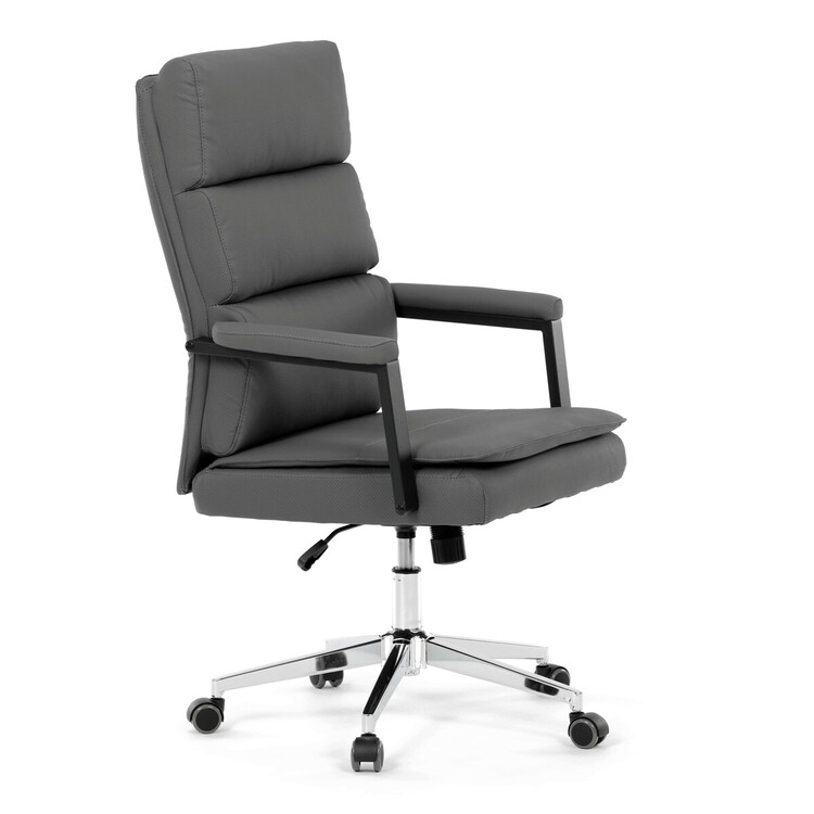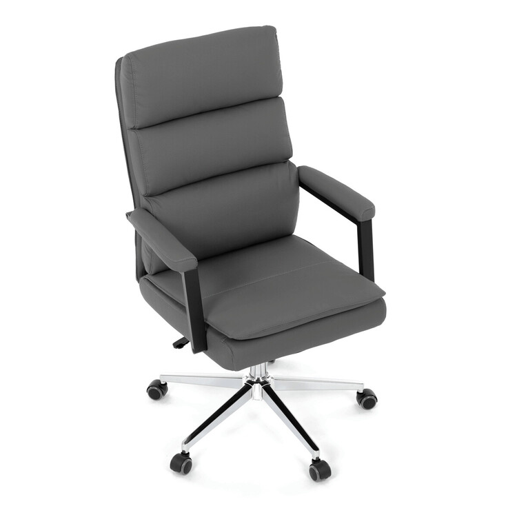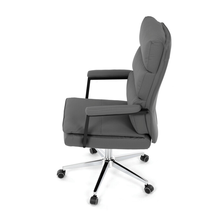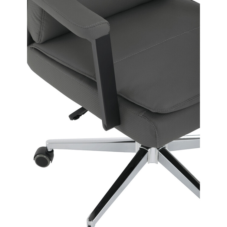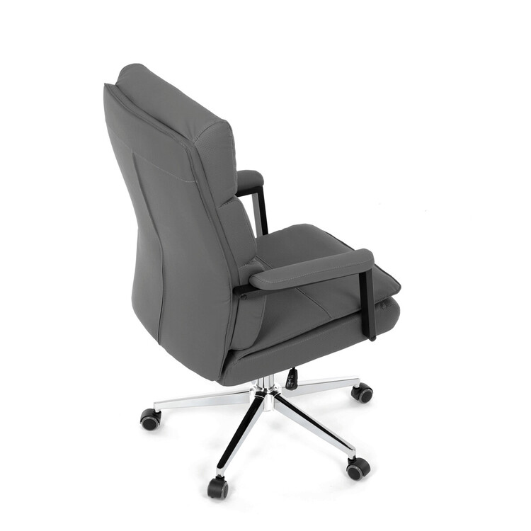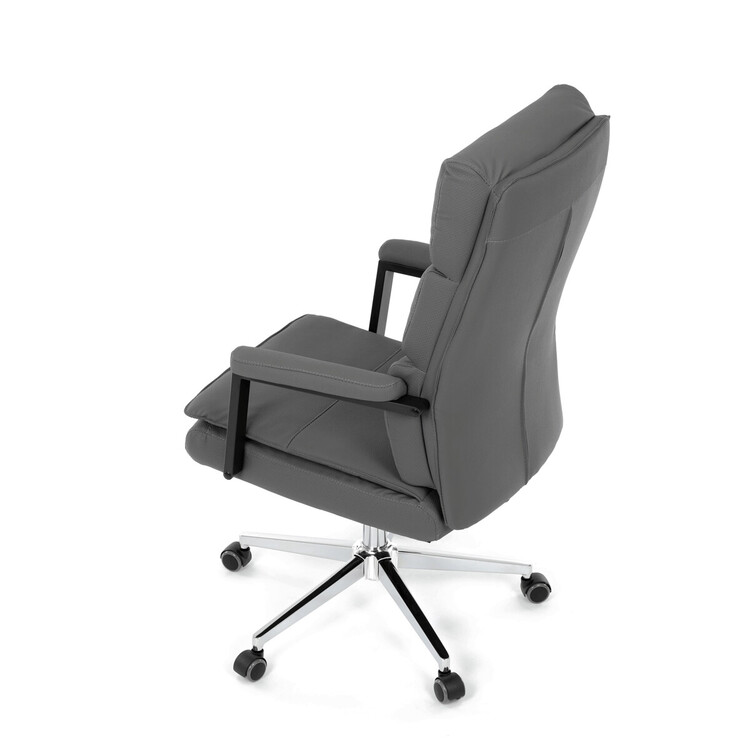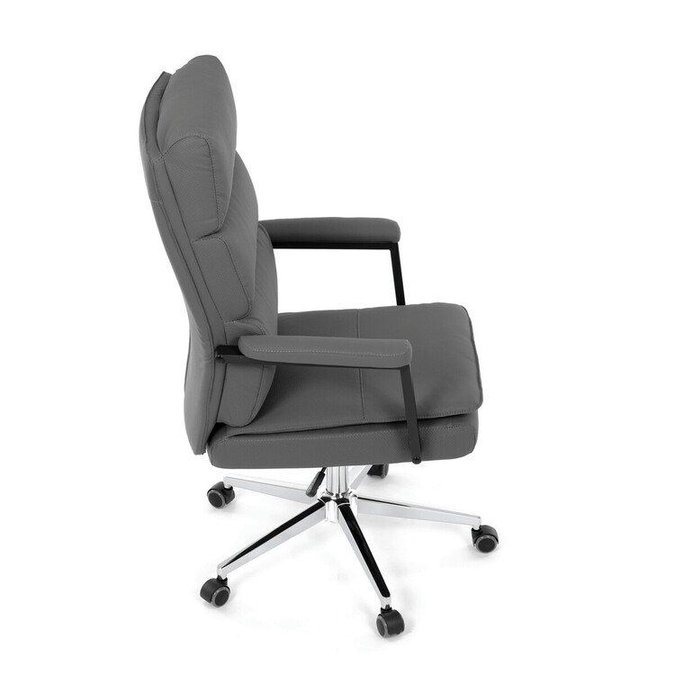 Kancelářské křeslo značky Autronic v moderním šedém provedení je dokonalou kombinací elegance a funkčnosti. Potah z strukturované ekokůže působí luxusně a snadno se udržuje, což oceníte při každodenním používání. Čalouněné područky a dvojitý sedák zajišťují vysoký komfort při práci. Stabilitu zaručuje chromovaný kříž, který je navíc odolný proti opotřebení. Houpací mechanismus přináší možnost relaxace během pracovního dne. Tato židle se stane stylovým a praktickým doplňkem vaší kanceláře nebo domácí pracovny.