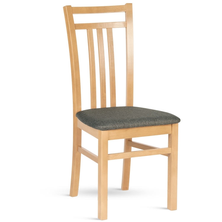 Jídelní židle, buk masiv, mořená. Sedák čalouněný.