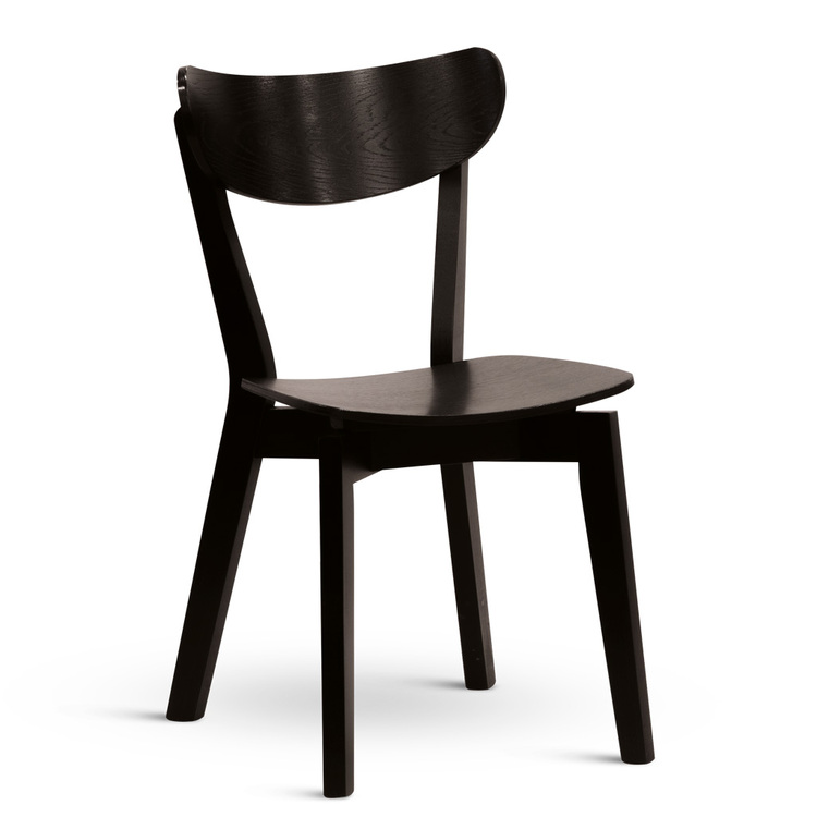 Moderní a elegantní jídelní židle. Kostra buk masiv, lakováno na černou barvu. Sedák+opěrka je překližka, lakováno na černou.