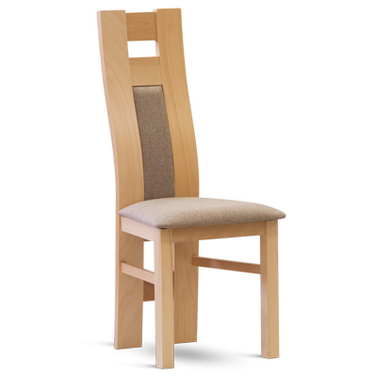 Elegantní židle s čalouněnou opěrkou. Židle je vyrobena z bukového, nebo dubového masivu. Kombinace buku, nebo dubu s látkou BOSS v atraktivních odstínech.