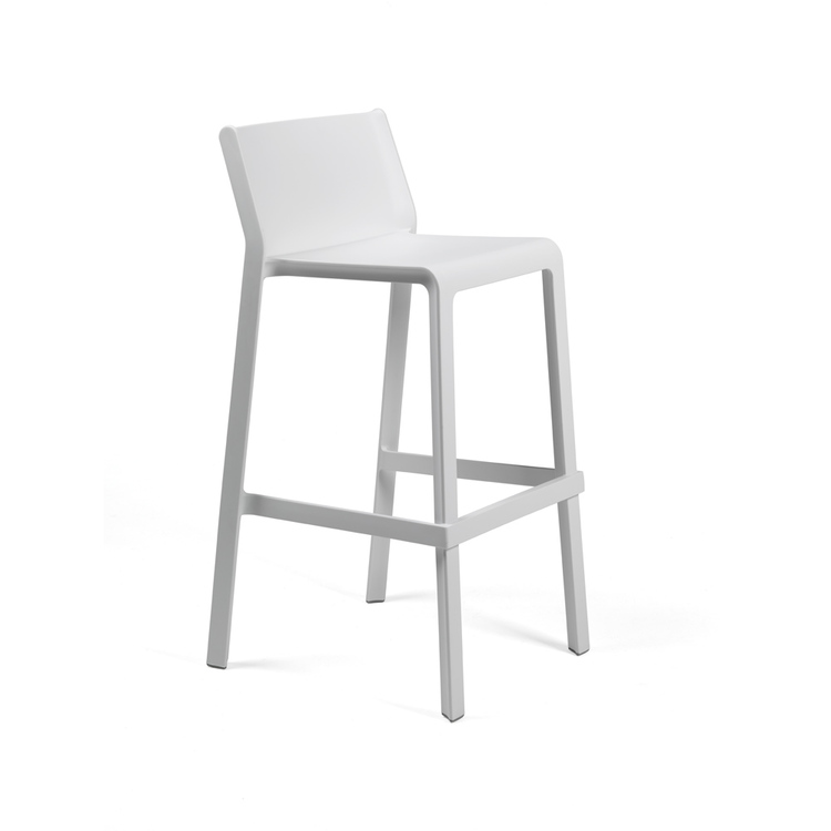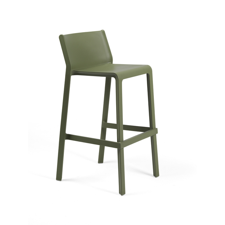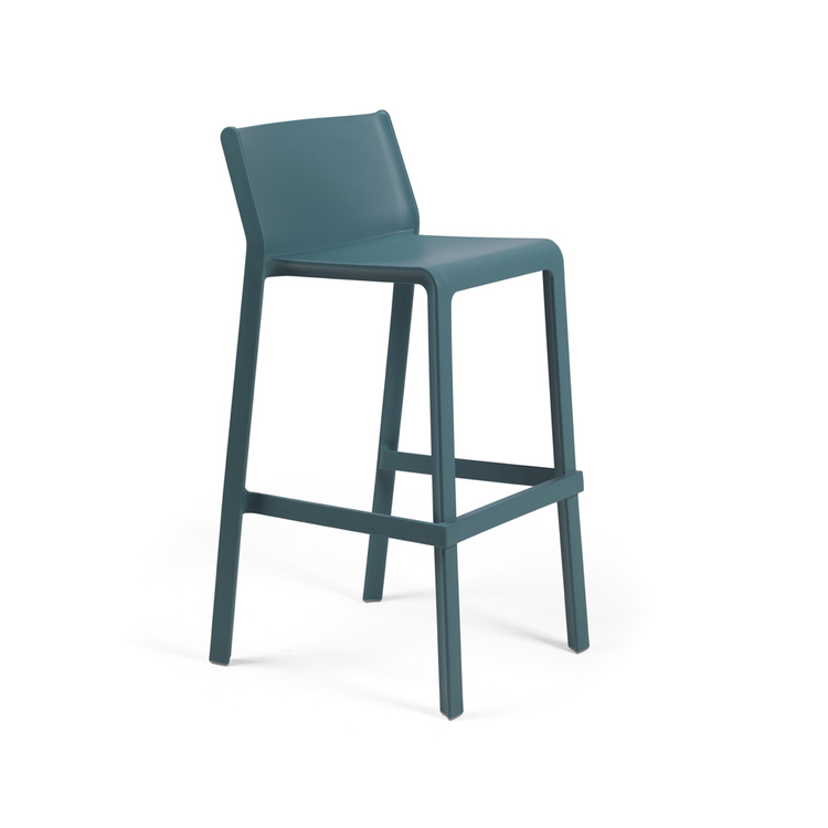 Moderní stohovatelná barová židle s protiskluzovou prvkem a matným povrchem.