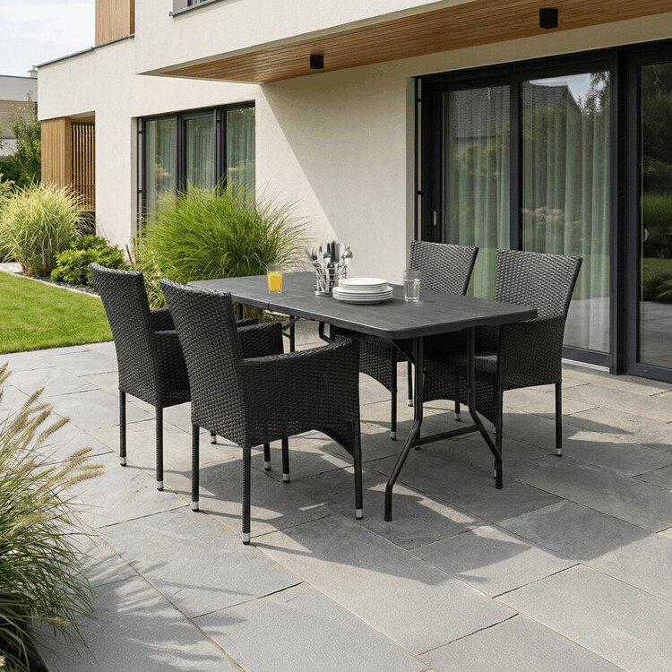 Stylová zahradní židle značky Autronic v elegantním černém provedení přináší dokonalou kombinaci komfortu a moderního designu. Výplet z kvalitního polyratanu je odolný vůči povětrnostním vlivům, což zajišťuje dlouhou životnost i při venkovním používání. Stabilní kovová konstrukce poskytuje... více informací o zboží