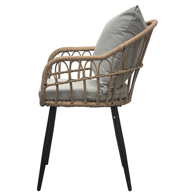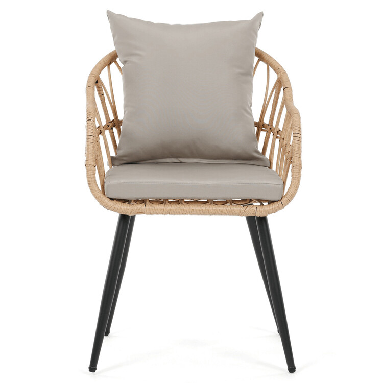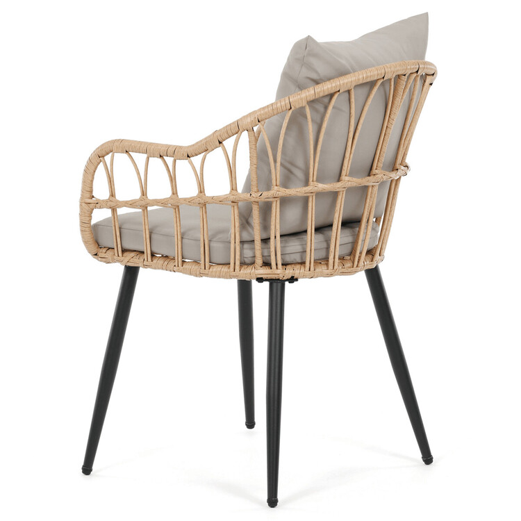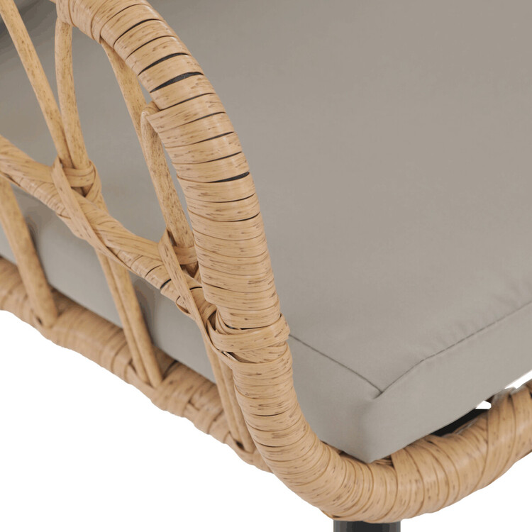 Moderní zahradní židle značky Autronic spojuje stylový design a funkčnost. Je vyrobena z kvalitního polyratanu v přírodní barvě, který zajišťuje odolnost vůči venkovním podmínkám a zároveň přidává židli příjemný přírodní vzhled. Pevná kovová konstrukce dodává stabilitu a spolu s moderním vzhledem se židle skvěle hodí na terasu, zahradu nebo balkon. Díky ergonomickému tvaru poskytuje pohodlné sezení, ideální pro relaxaci nebo posezení u stolu s přáteli. Polštář a 5 cm béžový sedák je součástí balení.