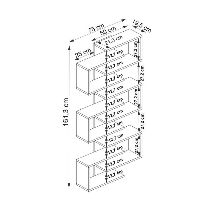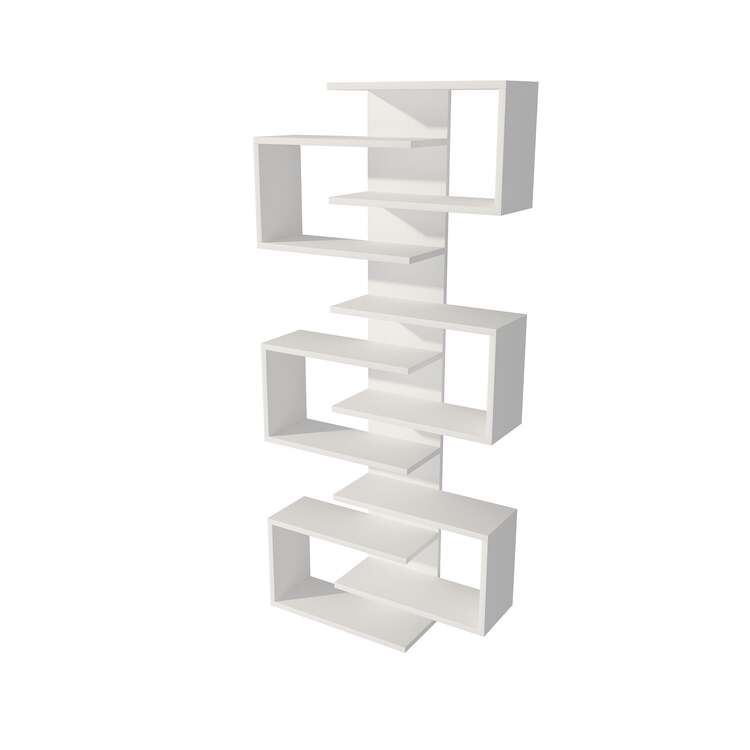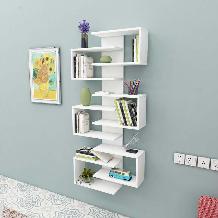 Závěsný regál je dokonalým spojením moderního designu a funkčnosti. Díky svému obdélníkovému tvaru a deseti prostorným policím nabízí dostatek místa pro vaše knihy, dekorace nebo jiné doplňky. Elegantní provedení a možnost připevnění na zeď zajišťují bezpečnost a stylový vzhled vašeho interiéru.