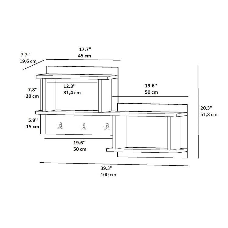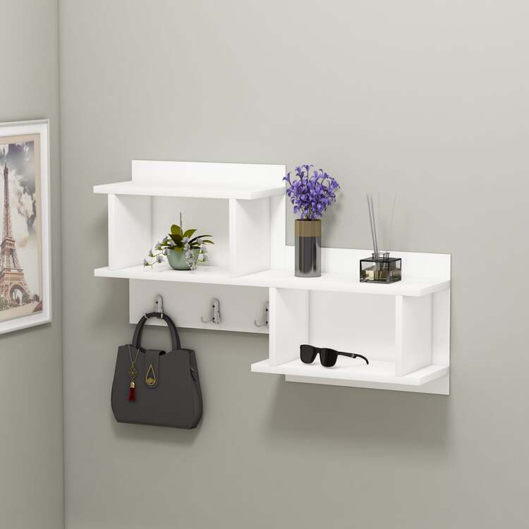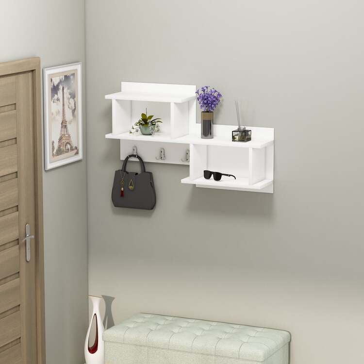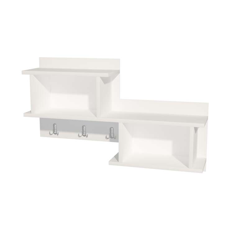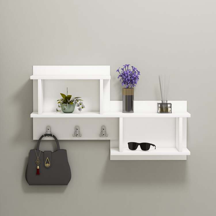 Nástěnná police nabízí funkční design a univerzální využití. Díky integrovaným věšákům a dostatečně prostorné odkládací ploše je ideální pro kuchyň i koupelnu. Její moderní provedení a obdélníkový tvar zajišťují, že snadno zapadne do každého interiéru.