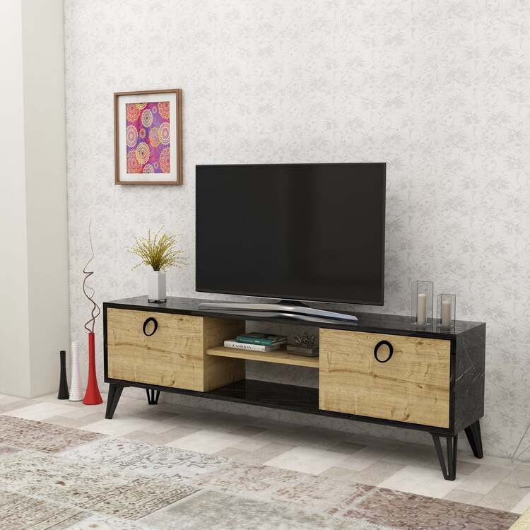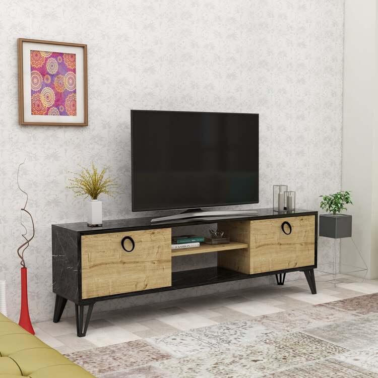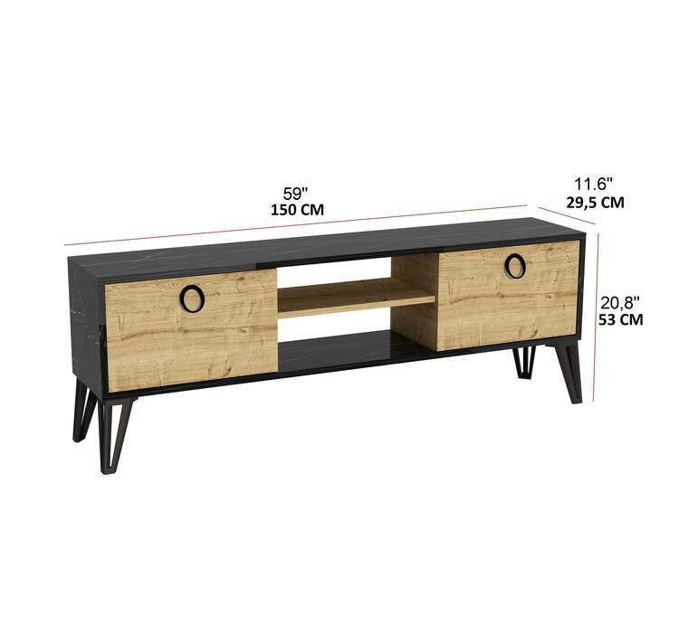 TV stolek je dokonalou kombinací elegance a funkčnosti, která promění váš obývací pokoj ve stylový prostor. Díky regálku a dvěma plným dvířkám nabízí dostatek úložného prostoru pro vaše elektronické zařízení, kabely, knihy či dekorace. Jeho luxusní design a kvalitní zpracování zaručují dlouhou životnost a moderní vzhled.
